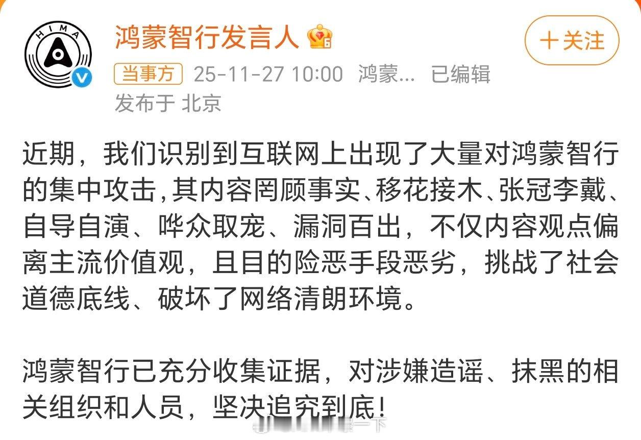 鸿蒙智行称已充分收集证据支持报警,也支持另一家报警,这事儿到底是谁在背后搞坏查起来应该不难。