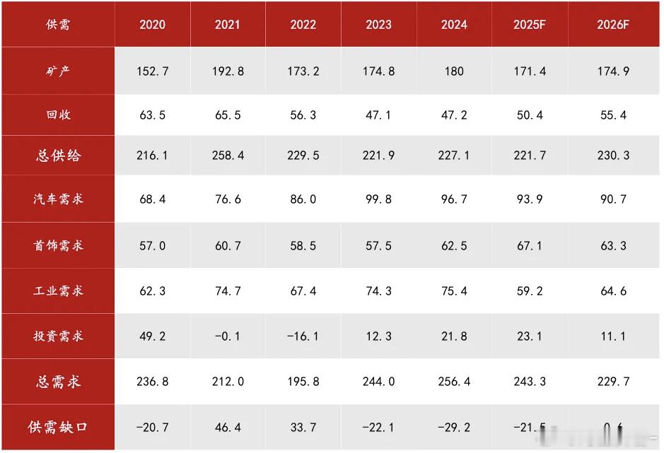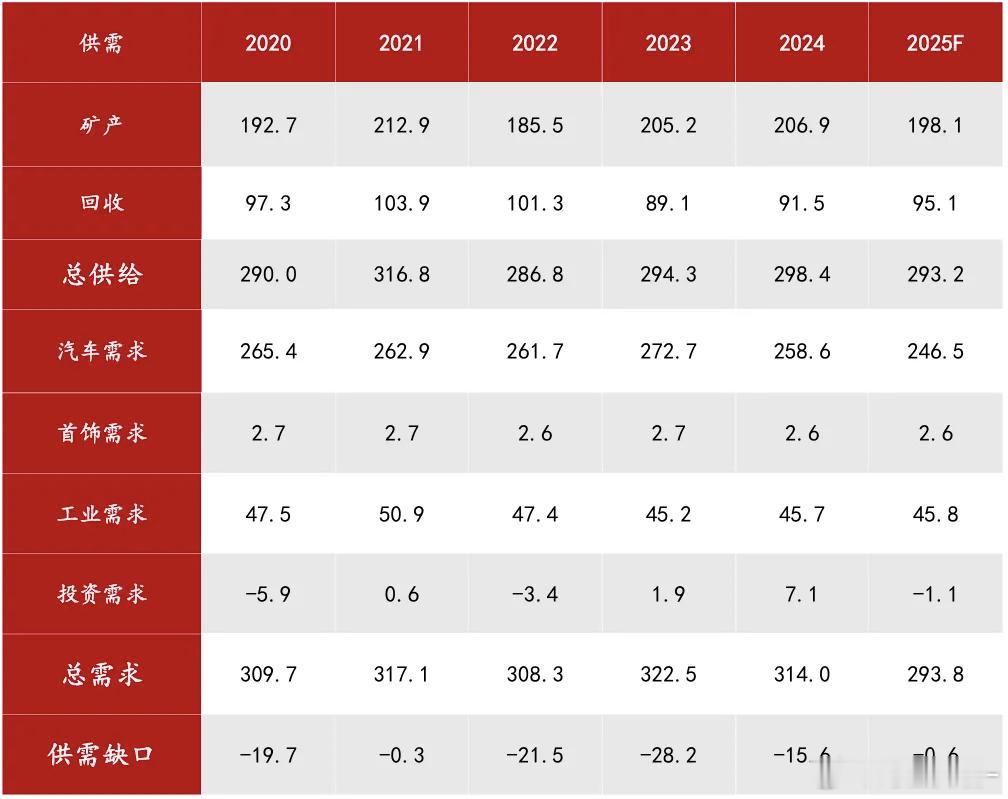 全球铂金、铂金供需平衡表期货