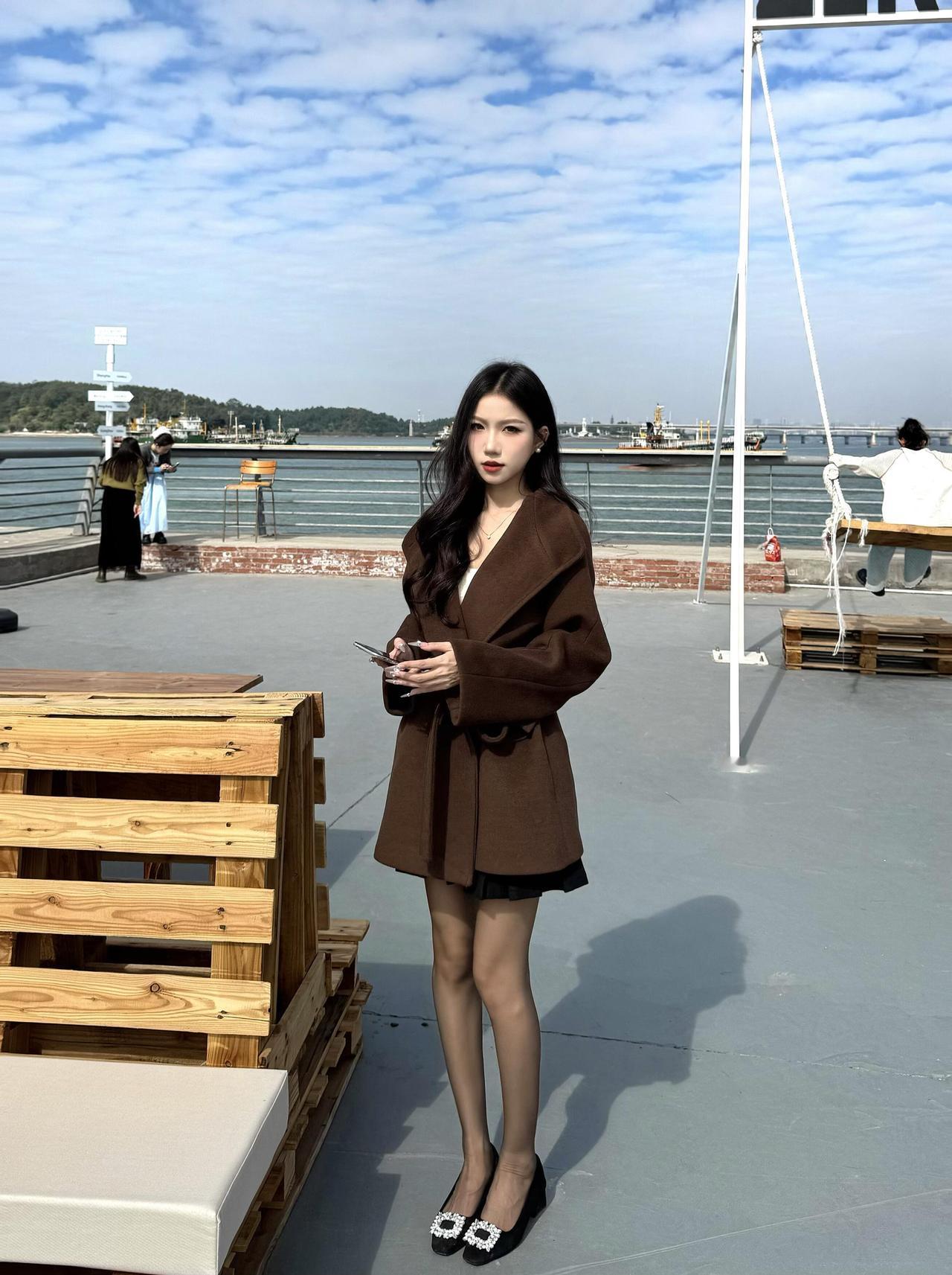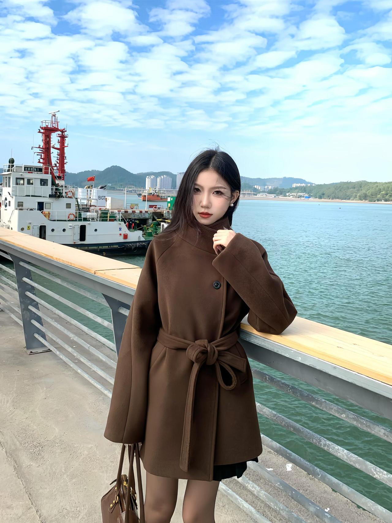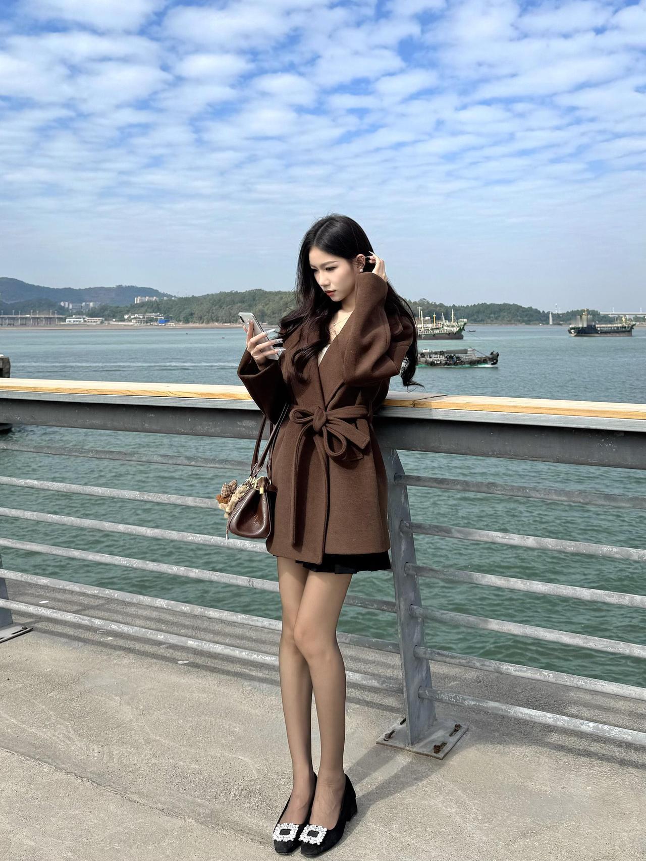 秋冬穿棕色大衣好温柔呀。