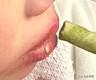 小姑娘的嘴巴都肿成这样了,还在吃零食,不疼吗? 早晨在公交车站等车 走过来一对