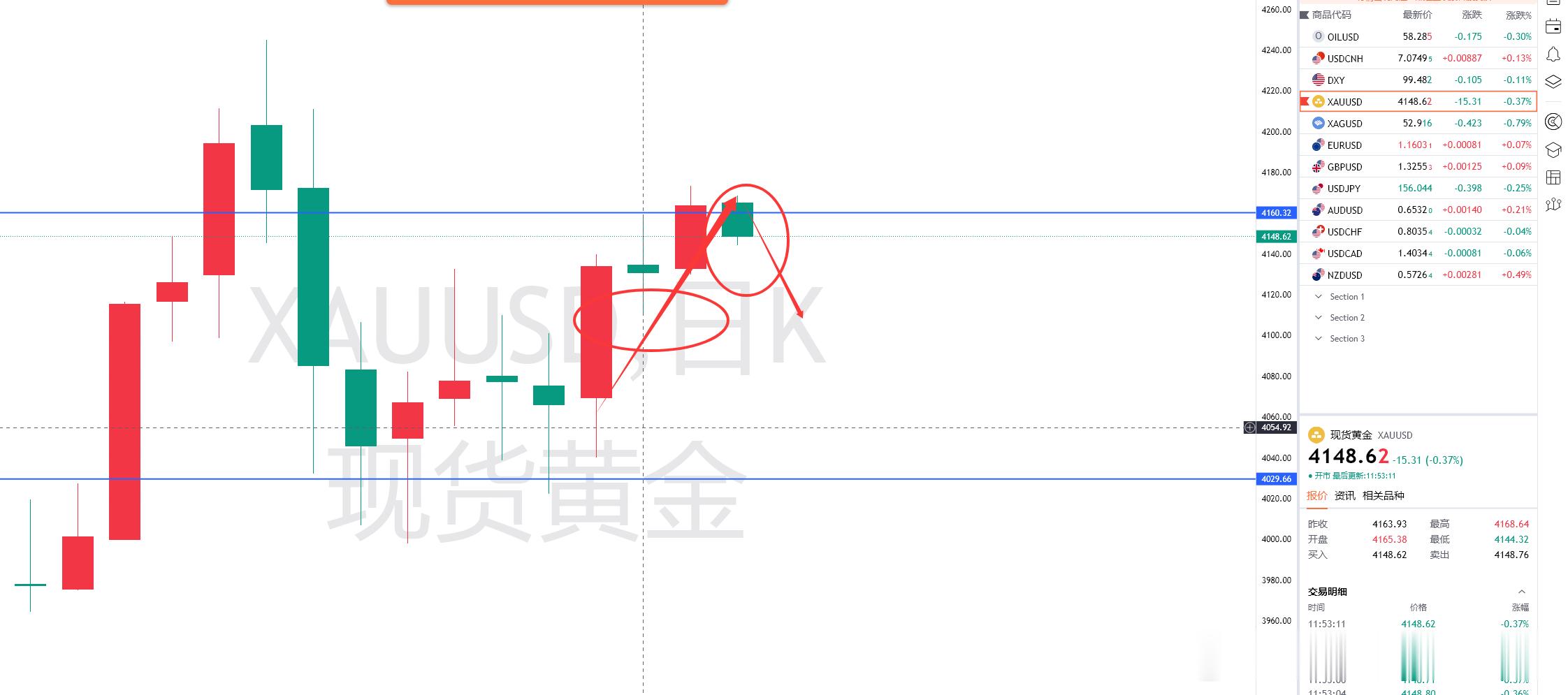 黄金技术面分析:昨日黄金日线小幅反弹收阳,波动并不算大,从最低的4132美元到最高的4173美元,最大波幅也仅为41美元,4173附近也是趋势线阻力,日线虽然收阳看多。但是趋势线未上破站稳之前,还是不建议激进做多。四小时图来看,黄金三角收敛格局暂未改变,下行连线趋势线压力在4173-75.只有有效上破趋势线压力,才能继续上看,那么也是新一轮机会,反之还是收敛末端整理,1小时级别走势上价格开始慢慢跌破短期的支撑带,价格开始承压短周期均线,在短线走势上可能会有一些调整的空间,关注下短线的调整修复情况。今日继续关注三角形上轨的压力位,也是今日的多空分水岭,若压制有效看回落;反之,会进一步上涨。由于今日为感恩节假期,波动率可能会缩小,稳健的不妨观望,等节后再做。综合来看,今日黄金短线操作思路上建议反弹做空为主,上方短期重点关注4175-4195一线阻力,下方短期重点关注4120-4100一线支撑。黄金金价