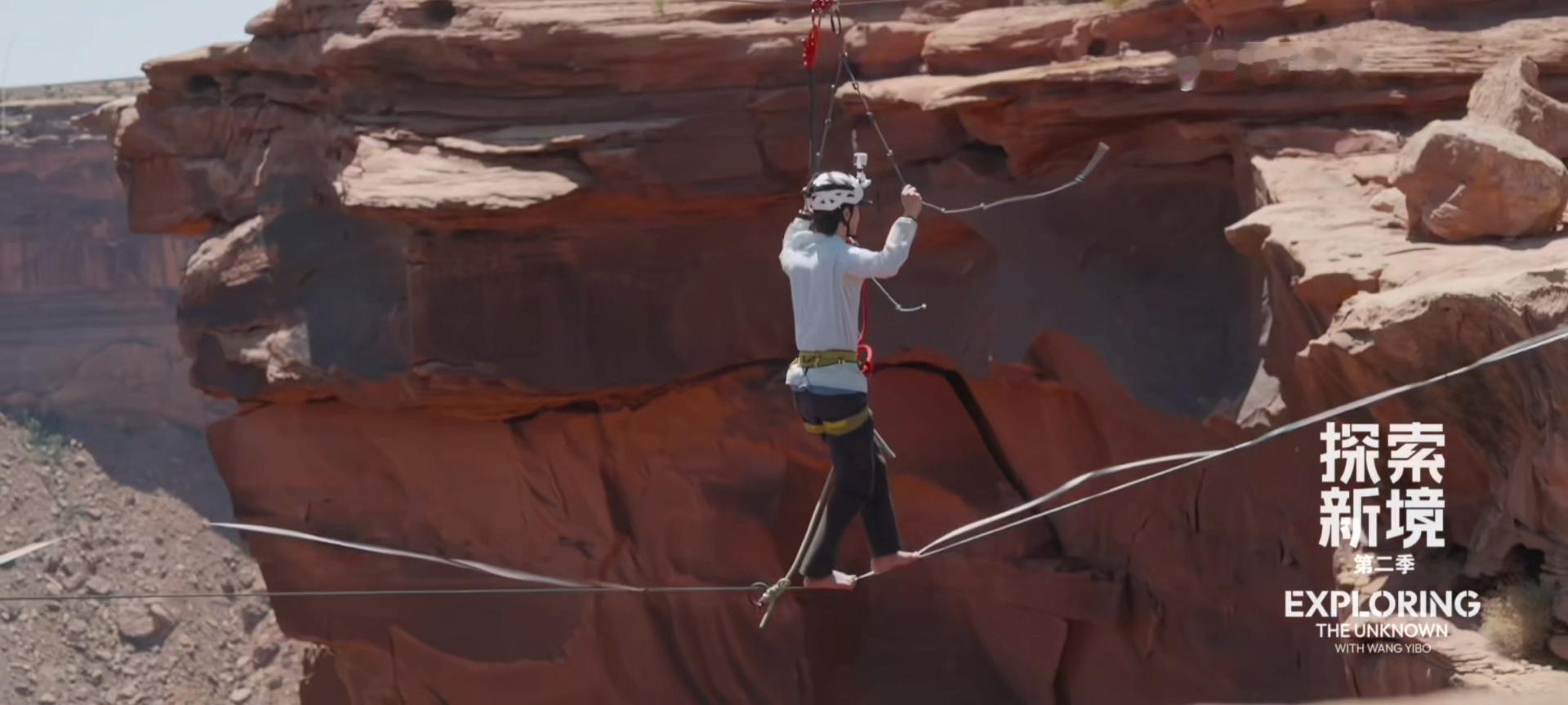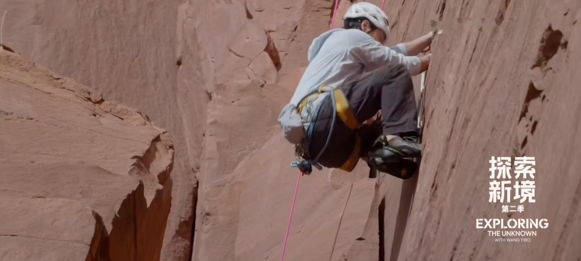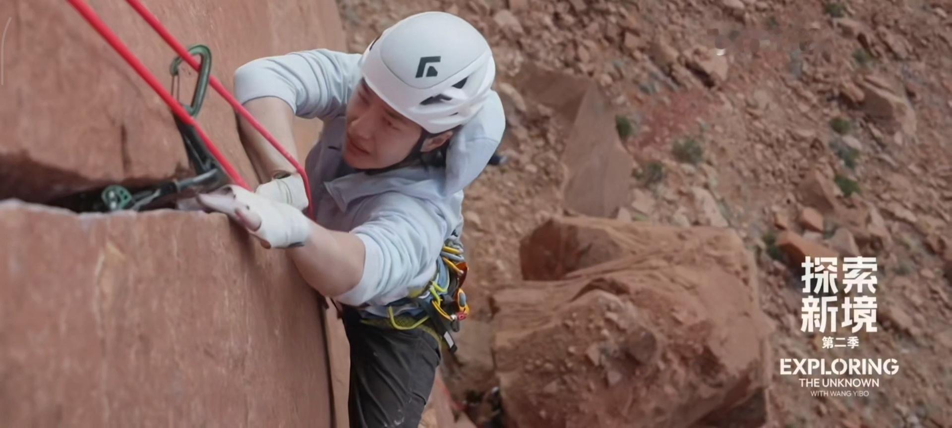 看探索新境2预告不敢呼吸王一博,独自一人挂在垂直的岩壁上,独自一人走几十仗的高空扁带,吓死我得了 王一博探索新境logo拯救废片 王一博裂缝攀岩