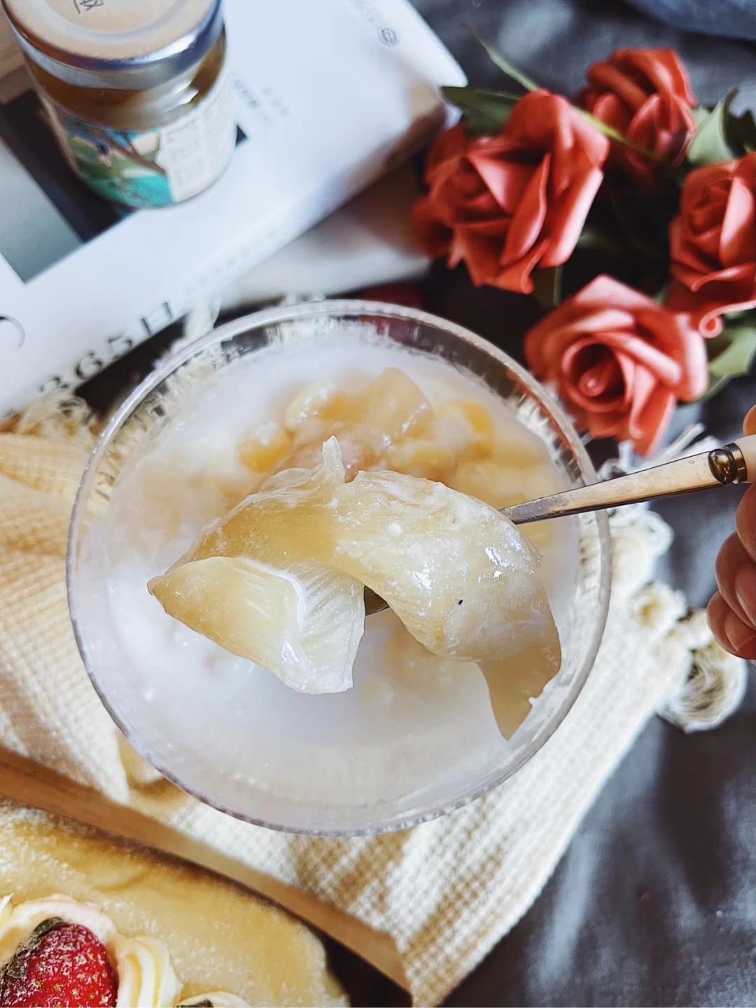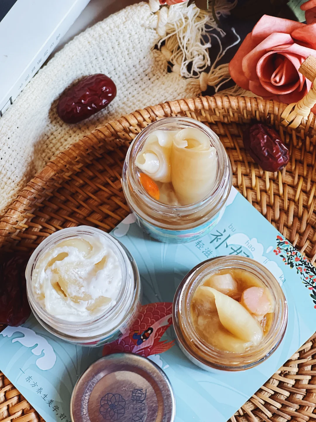 🎊桂圆味的,搭配了枸杞,可以开胃健脾,安神补血。大块的花胶,q弹有嚼劲。