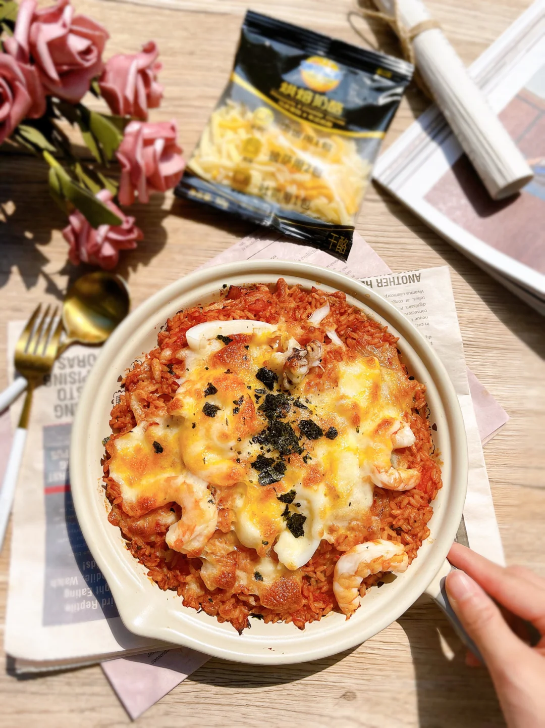 ⚠️做出来的焗饭,不仅有浓浓的奶酪咸香,还有强韧绵密的拉丝。一袋里面有独立的4小袋“小黑袋”做焗饭的时候直接用1小袋,铺在米饭上🍚每粒米饭都包裹着番茄泡菜酱汁,在混合可以拉丝的烘焙奶酪。谁能拒绝的了哇❗️❗️