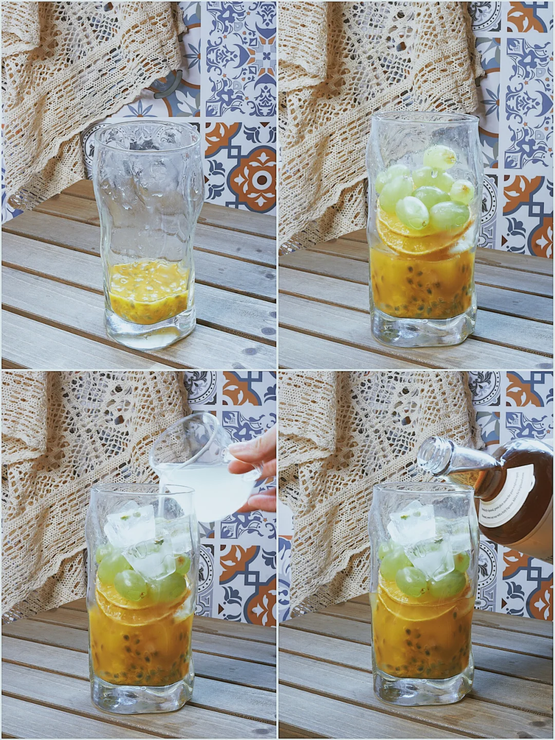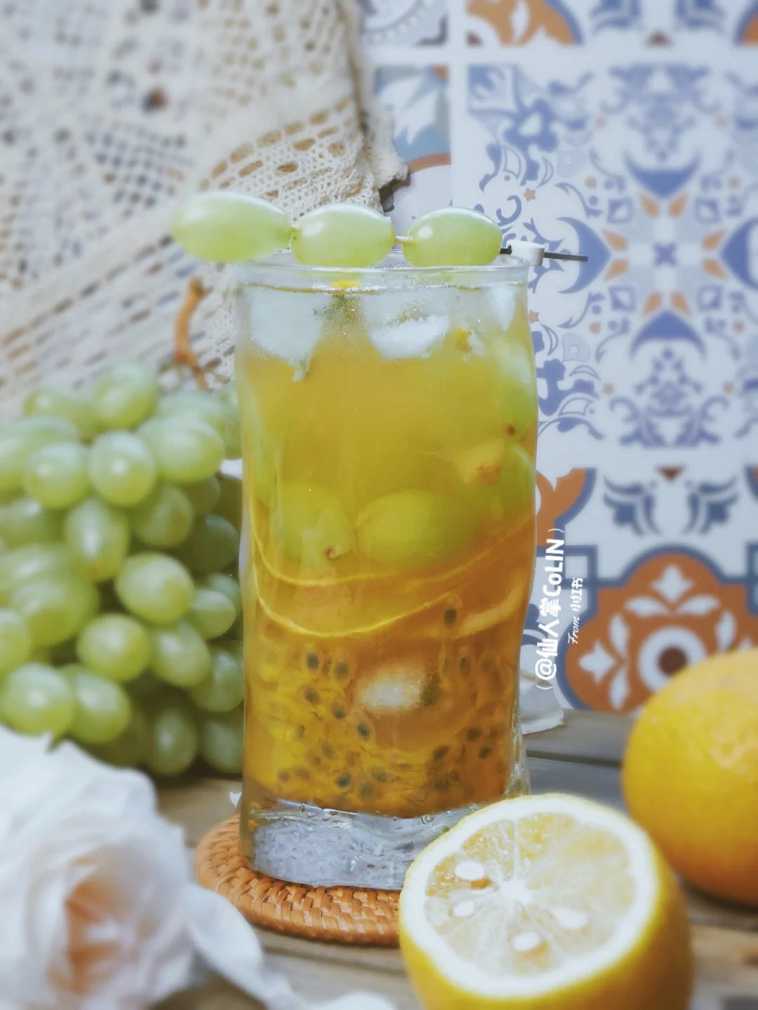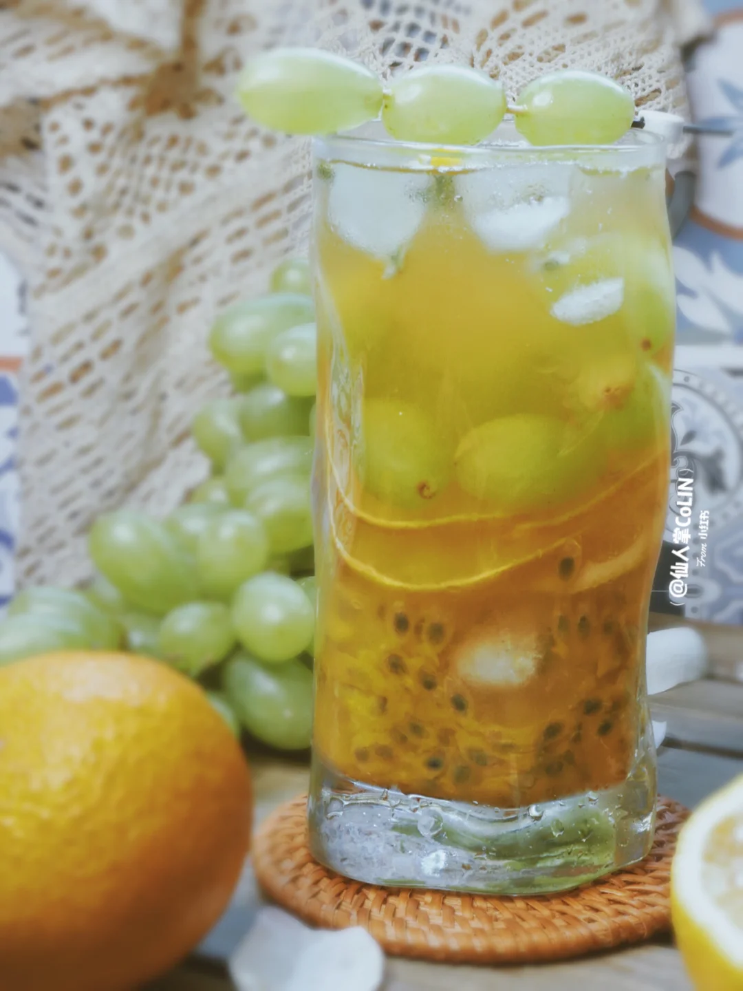 百香果2个 柠檬、果冻橙半个 青提6个 蜂蜜水15ml