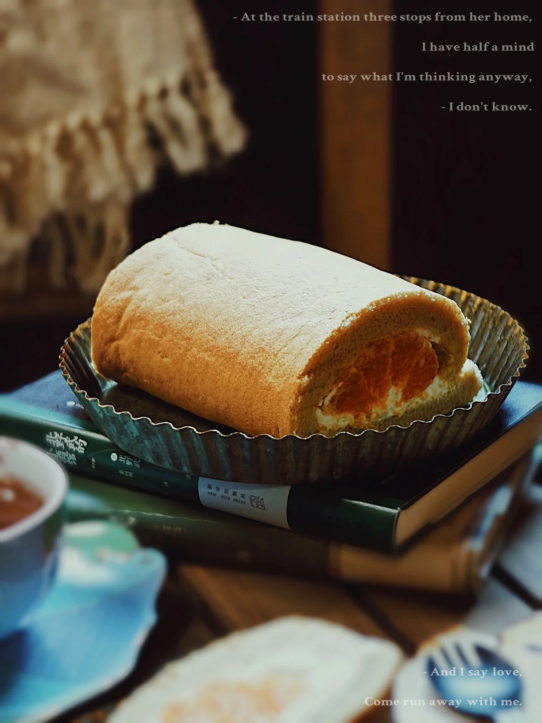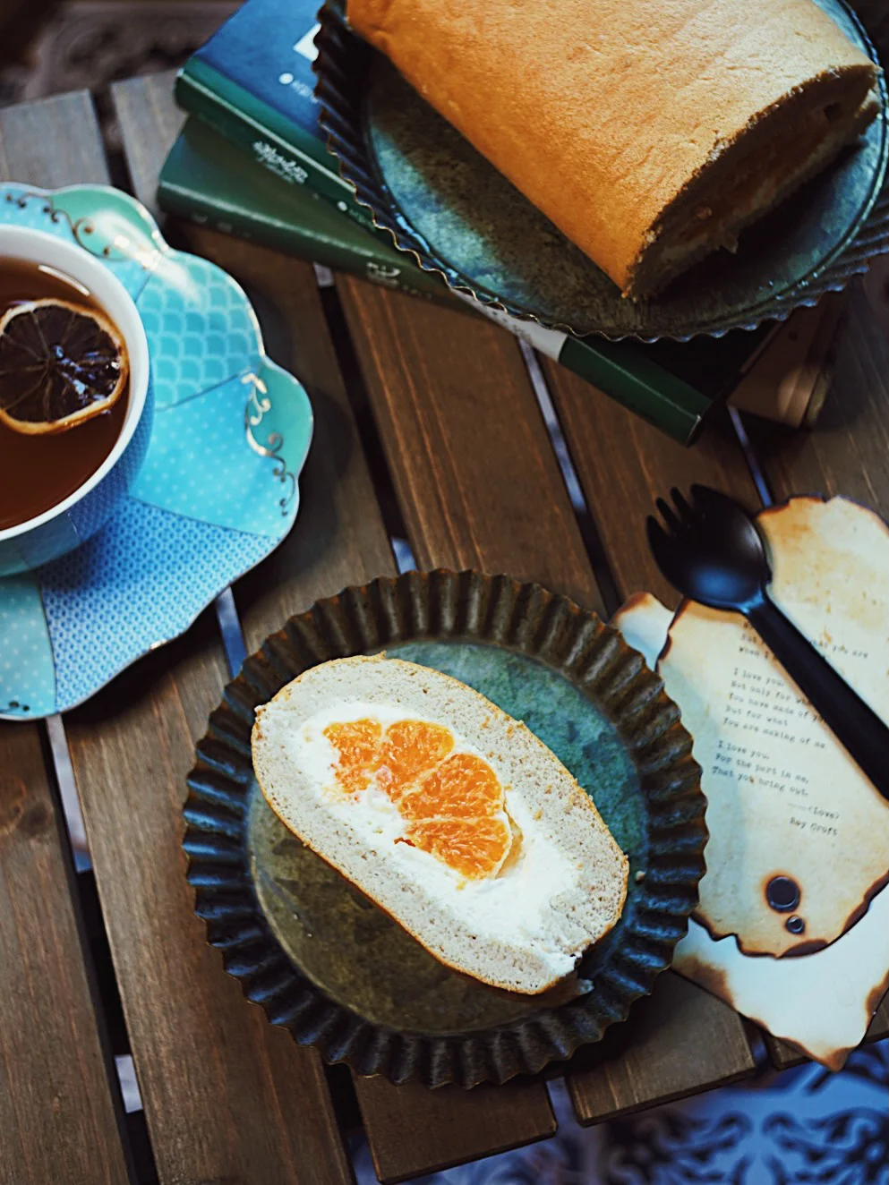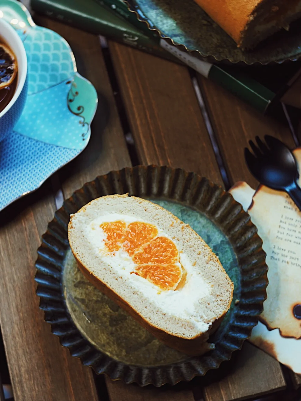 这次撸的蛋糕卷🍰清甜多汁的香橙🍊搭配清新优雅的红茶液。经过烤箱的高温烘烤,香气充盈整个空间。
