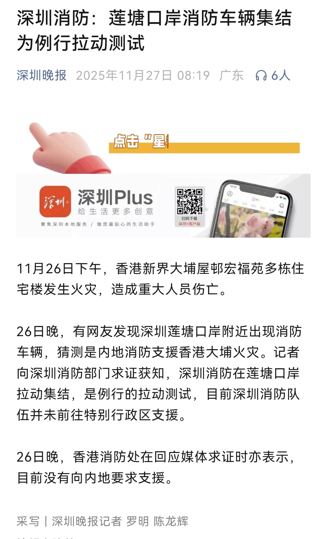 深圳消防:莲塘口岸消防车辆集结为例行拉动测试。