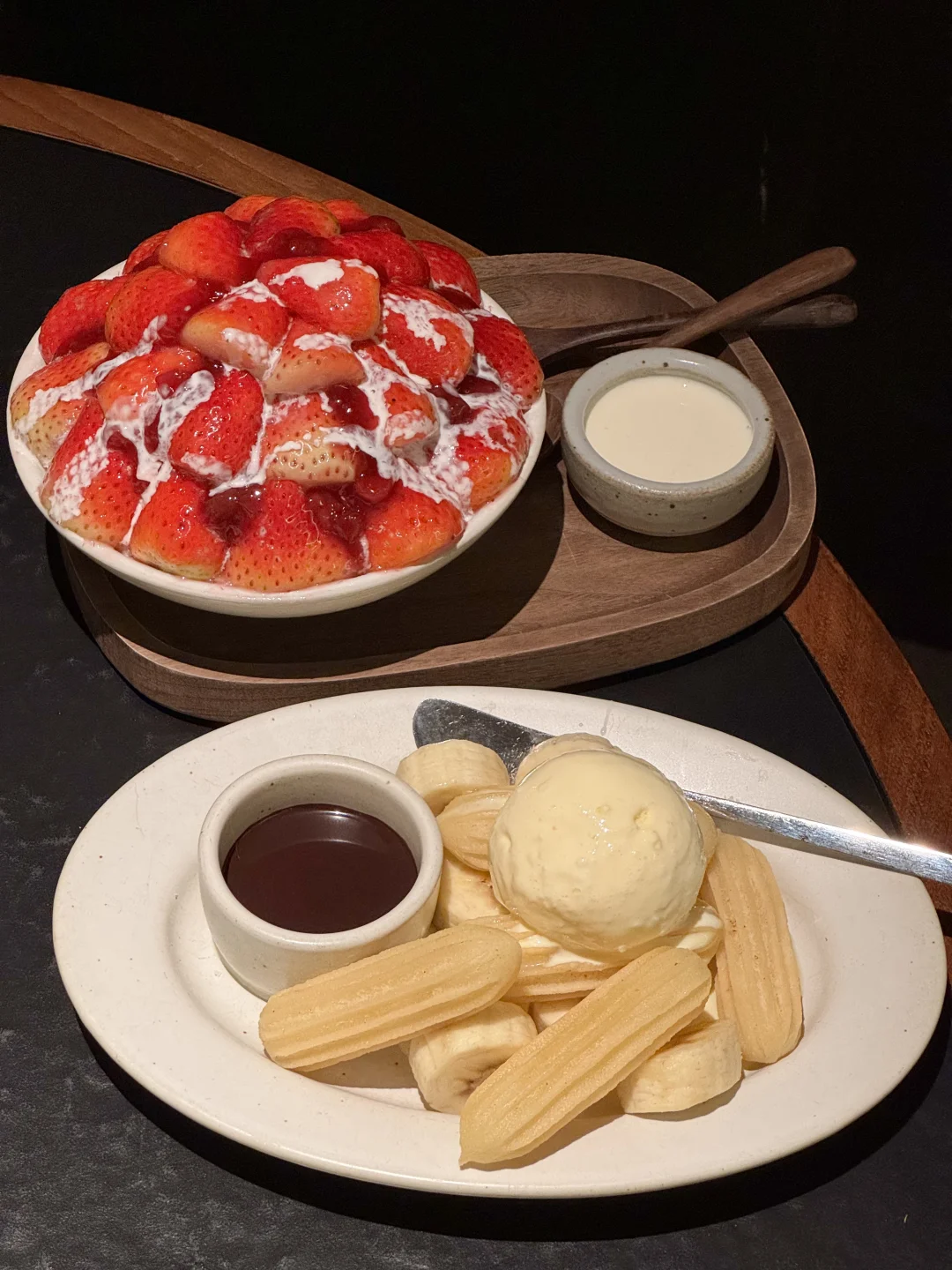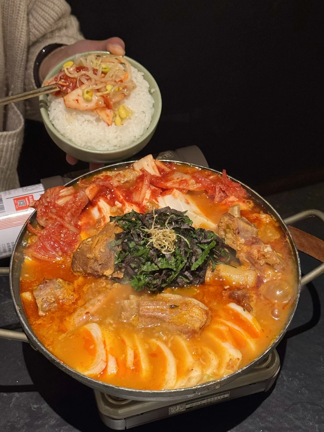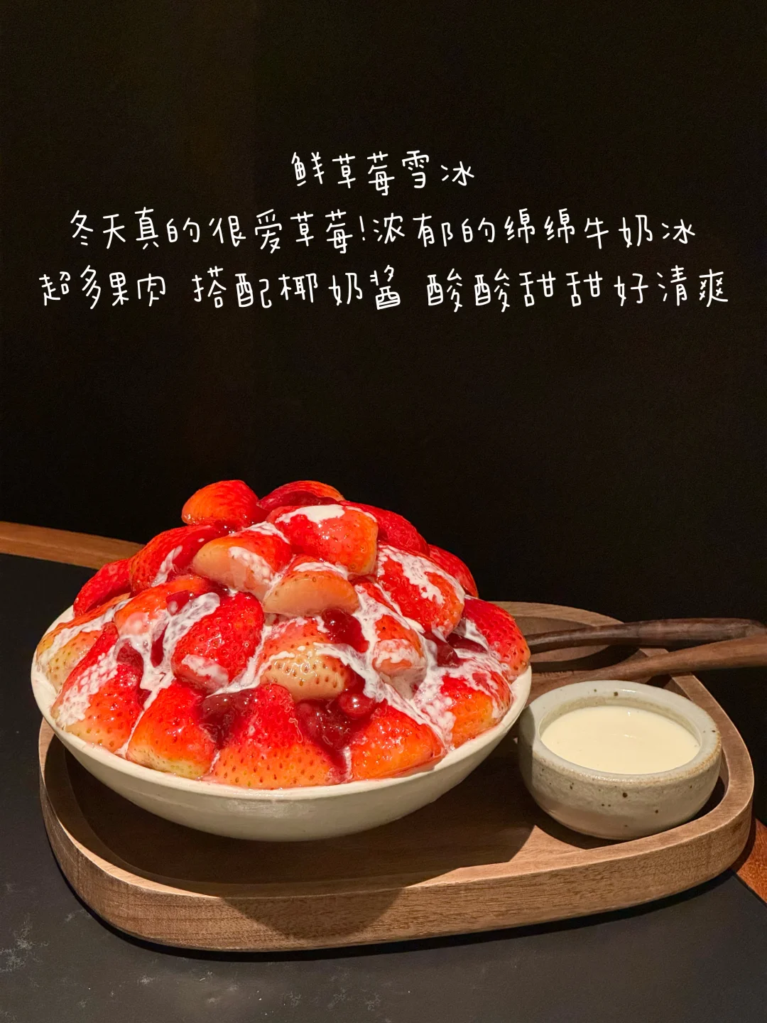 🥹太幸福了!在need吃上了🍓鲜草莓雪冰~浓郁的绵绵牛奶冰 超多果肉搭配椰奶酱 酸酸甜甜好清爽 桌边现做的草莓椰子提拉米苏 草莓脑袋直接沦陷😭 冬天来上一锅热fufu的紫苏猪肋排泡菜锅 炖的软烂的猪肋排 搭配豆腐和软糯的年糕 汤汁拌米饭🍚嘎嘎香! 还有新出的火辣金枪鱼紫菜包饭 分量好足🤤微辣的口感每一口都很扎实 是我下次来还会再点的! 火山芝士鸡蛋糕、蜂巢米酒、香蕉吉事果🍌…都是不错的😋