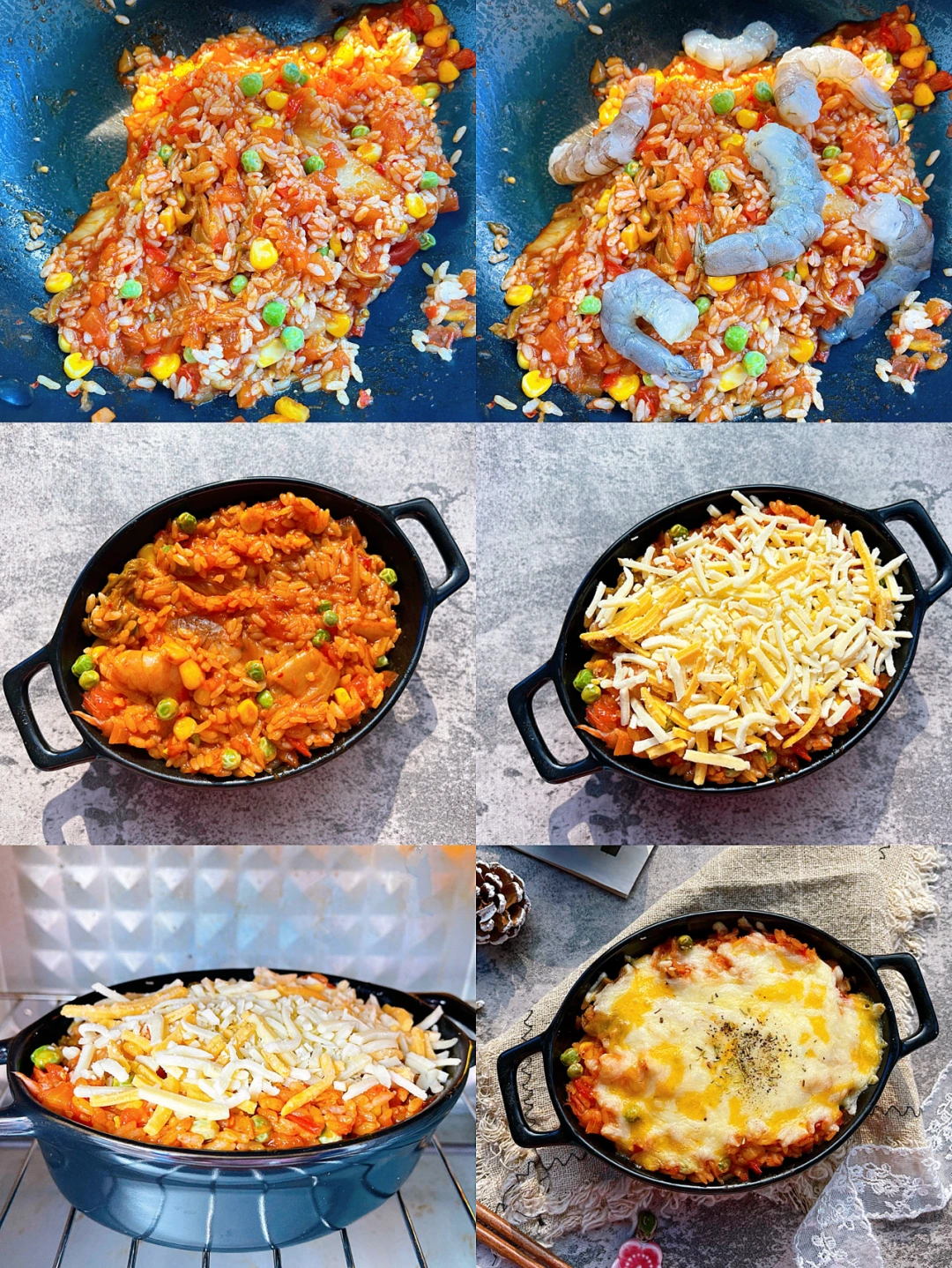 🌸米饭是熟的,所以烘烤时间不必太长,只要把奶酪烤化就好。如果没有烤箱的也可以放入微波炉,或者加少量的水,盖上锅盖焖融化也是可以的。