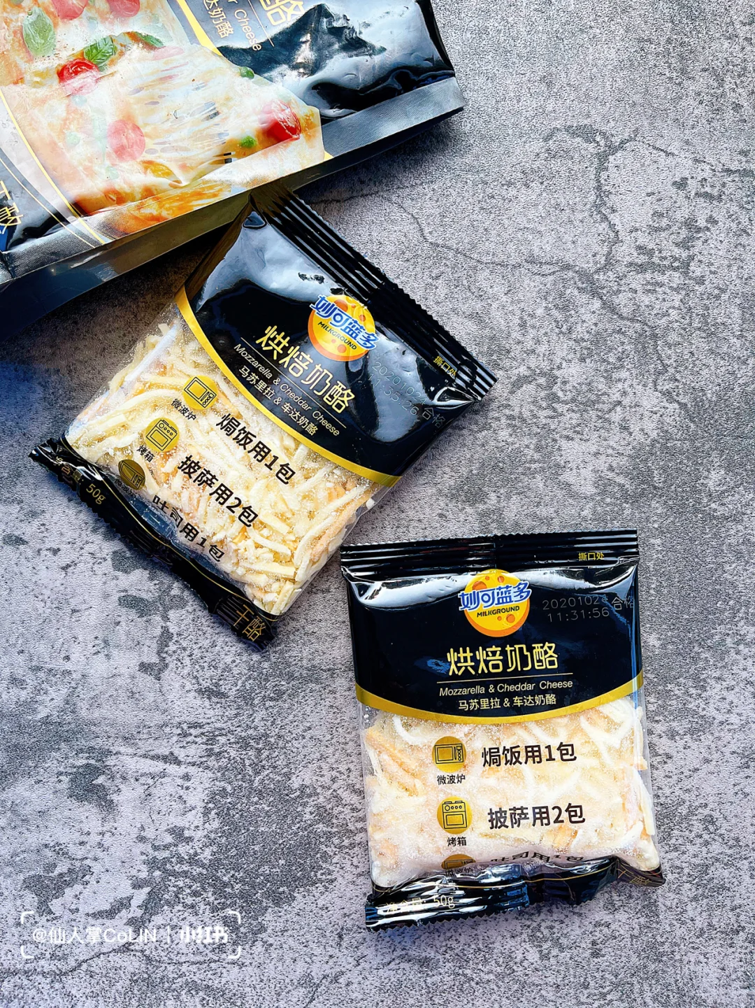 🔊我用的妙可蓝多烘焙奶酪,融合了马苏里拉➕车达奶酪两种,风味上𝐠𝐞𝐧𝐠有层次,人家明明是高蛋白❗️低碳水❗️优质脂肪啦❗️做出来的焗饭,不仅有浓浓的奶酪咸香,还有强韧绵密的拉丝,一袋里面有独立的4小袋“小黑袋”,做焗饭的时候我直接用1小袋。这是我用过𝐙𝐮𝐢方便的奶酪啦。