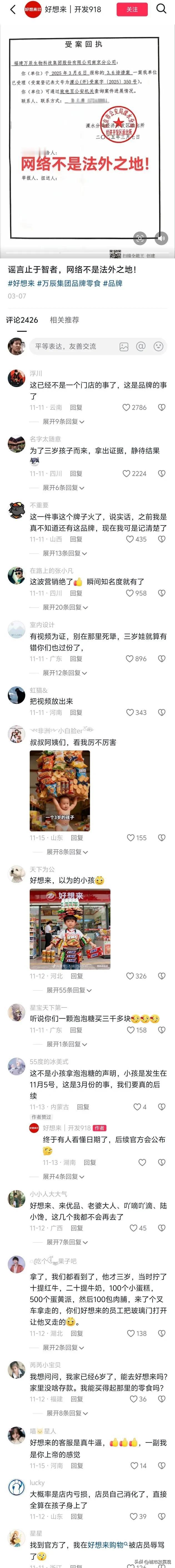 好想来的报警回执下面全是吃瓜群众对“小孩哥”的声援。好想来也是,你说你一个卖零食的,去惹一个3岁小朋友干嘛?惹完了又不道歉。那你就等着被大家痛批呗!既然在道歉和沉默之间选择沉默,在公布和拉黑之间选择拉黑,那你就不要追求什么商业美誉度了。会有相当一部分消费者从此认准好想来。干啥?坚决不买!