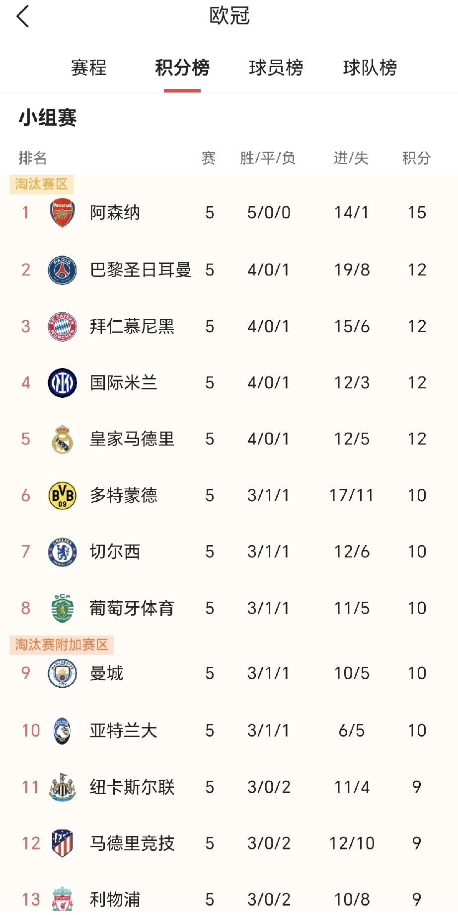 年年掉链子的阿森纳,今年如果拿不到联赛冠军和欧冠就是失败……! 欧冠,阿森纳目前保持5战5胜,分别是2-0毕尔巴鄂竞技,2-0奥林匹亚科斯,4-0马德里竞技,3-0布拉格斯拉维亚,3-1拜仁慕尼黑,其中击败马德里竞技和拜仁足以证明阿森纳目前的实力强大,要知道拜仁慕尼黑之前在欧冠也是4战全胜,跨赛季18场不败了!阿森纳在欧冠5场比赛打进14球仅丢1球,力压拜仁,大巴黎,皇马这样的豪门球队,排名第一! 英超联赛,阿森纳目前以12战9胜2平1负积29分的战绩高居联赛榜首,领先第二名切尔西多达6分,12场比赛打进24球联赛最强火力,丢了6球联赛最少,最稳固的防守!英超卫冕冠军利物浦目前拉胯,排名掉到第12,曼城也处于水深火热,问题不断,今年的阿森纳有种高出不胜寒的感觉! 前几年的阿森纳在赛季之初也很猛,但到了中后期,总是会习惯性掉链子被别人超越,给人虎头蛇尾的感觉,但是今年不一样,全队13亿的身价,应该开花结果了,拿不到联赛冠军和欧冠,阿森纳就是失败……!阿森纳 英超