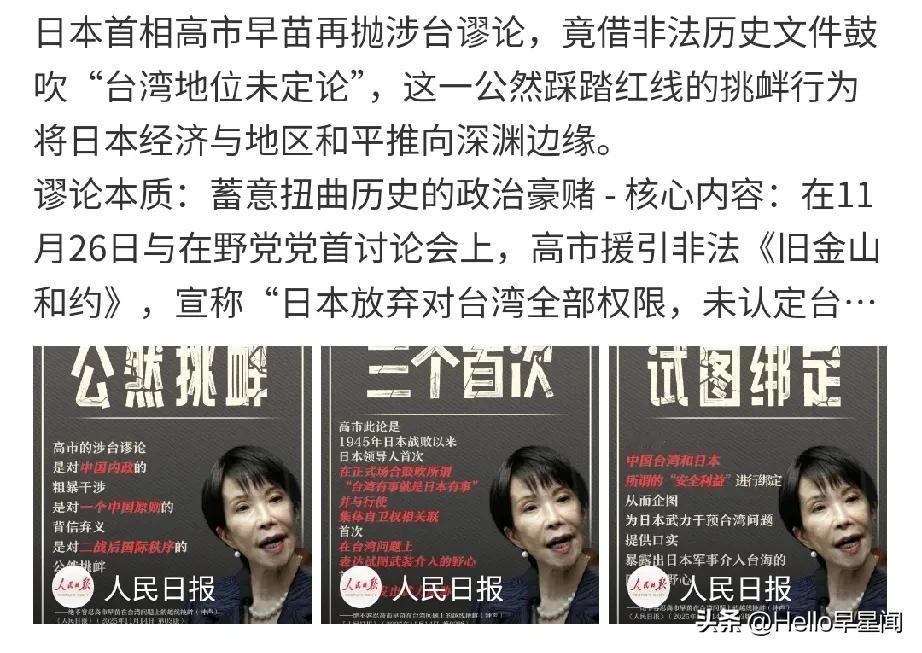 明年4月或成为高市早苗大限! 现在彻底看清了吧!高市早苗就是一颗死不认账、死不改悔继续公开扩充壮大日本军国主义的雷,且其国内民调越来越高! 但有一个关键问题不容忽视,特朗普明年4月访华,一旦中美达成某种默契(就像当年中国发起那场自卫反击战前与美国达成默契一样),就会以某种方式正式开战! 也就是说,明年4月或成为高市早苗的大限?