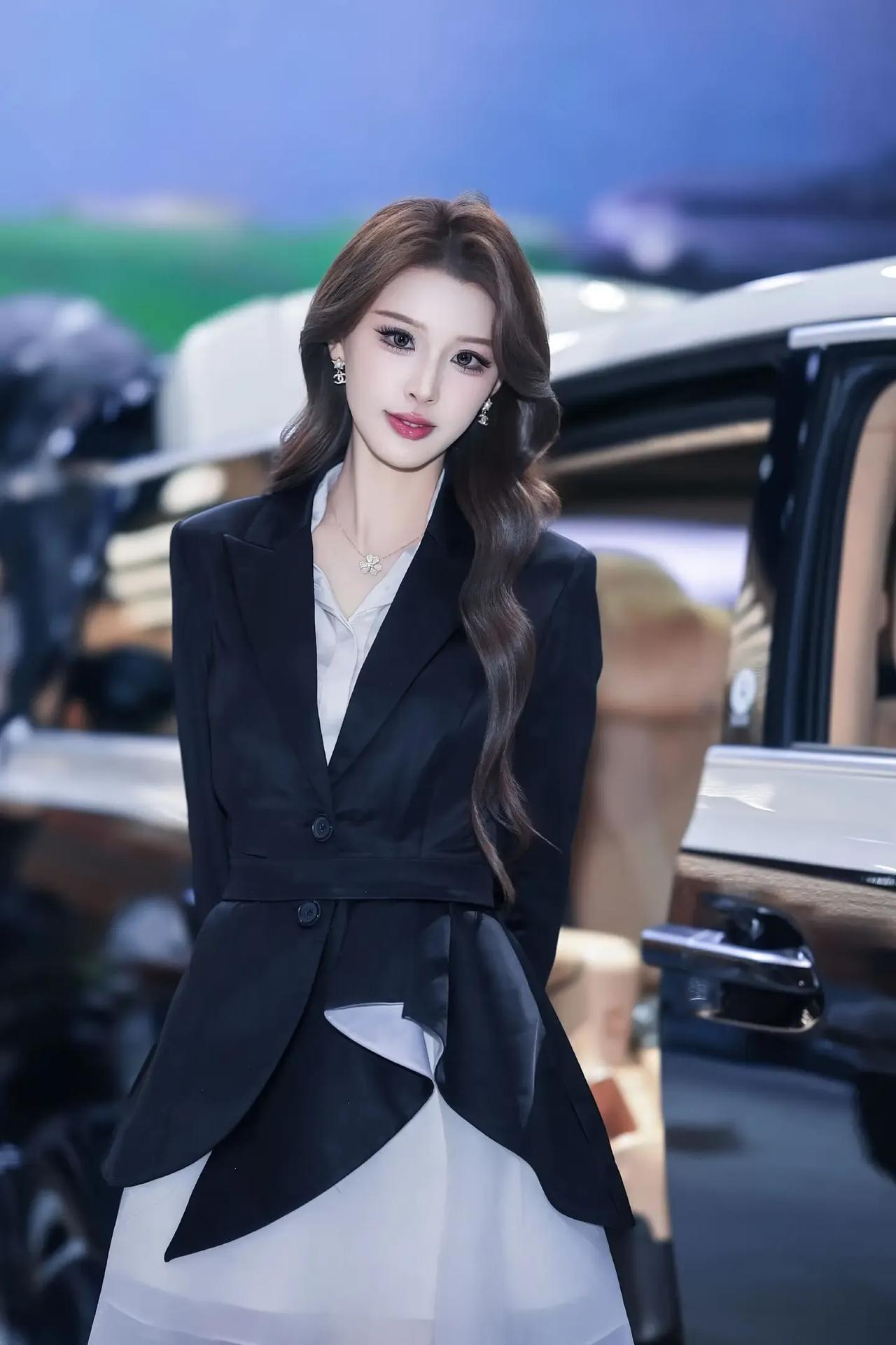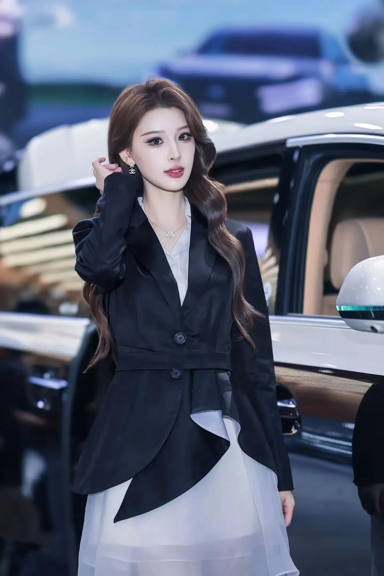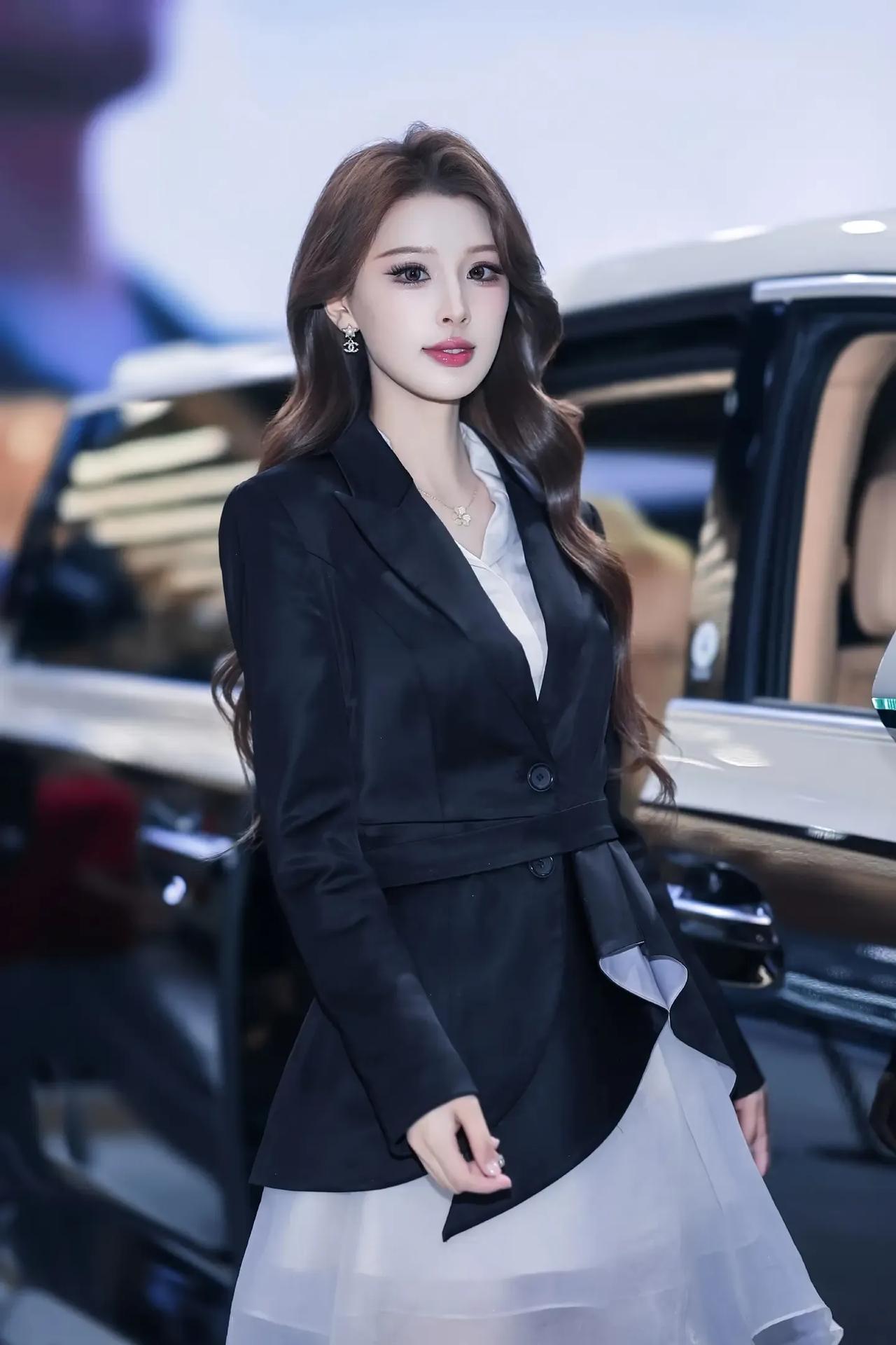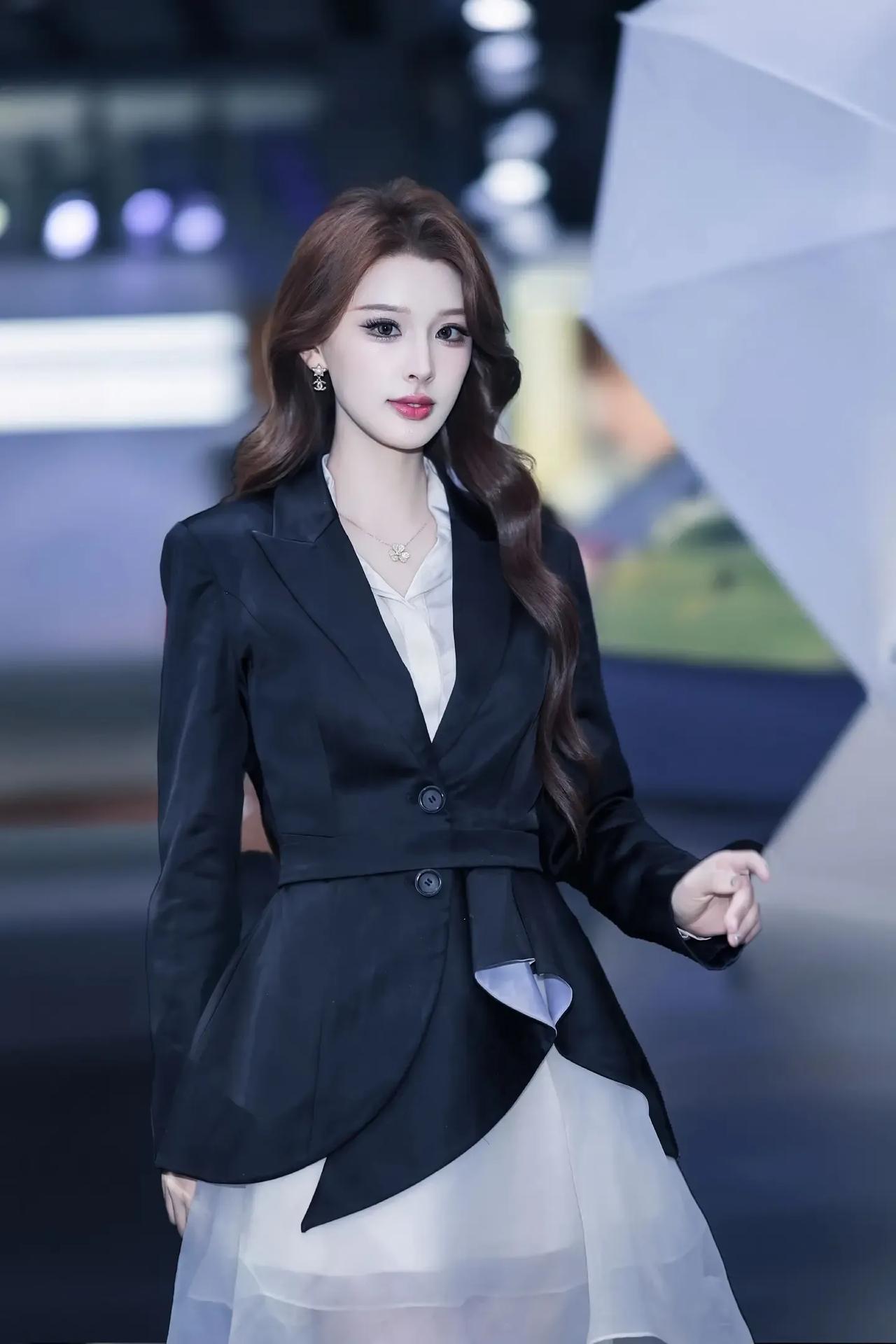 徐敏这模特太牛了!在超模大赛上,她那身黑西装裹蕾丝造型杀疯了。肩线是带肌理的蕾丝