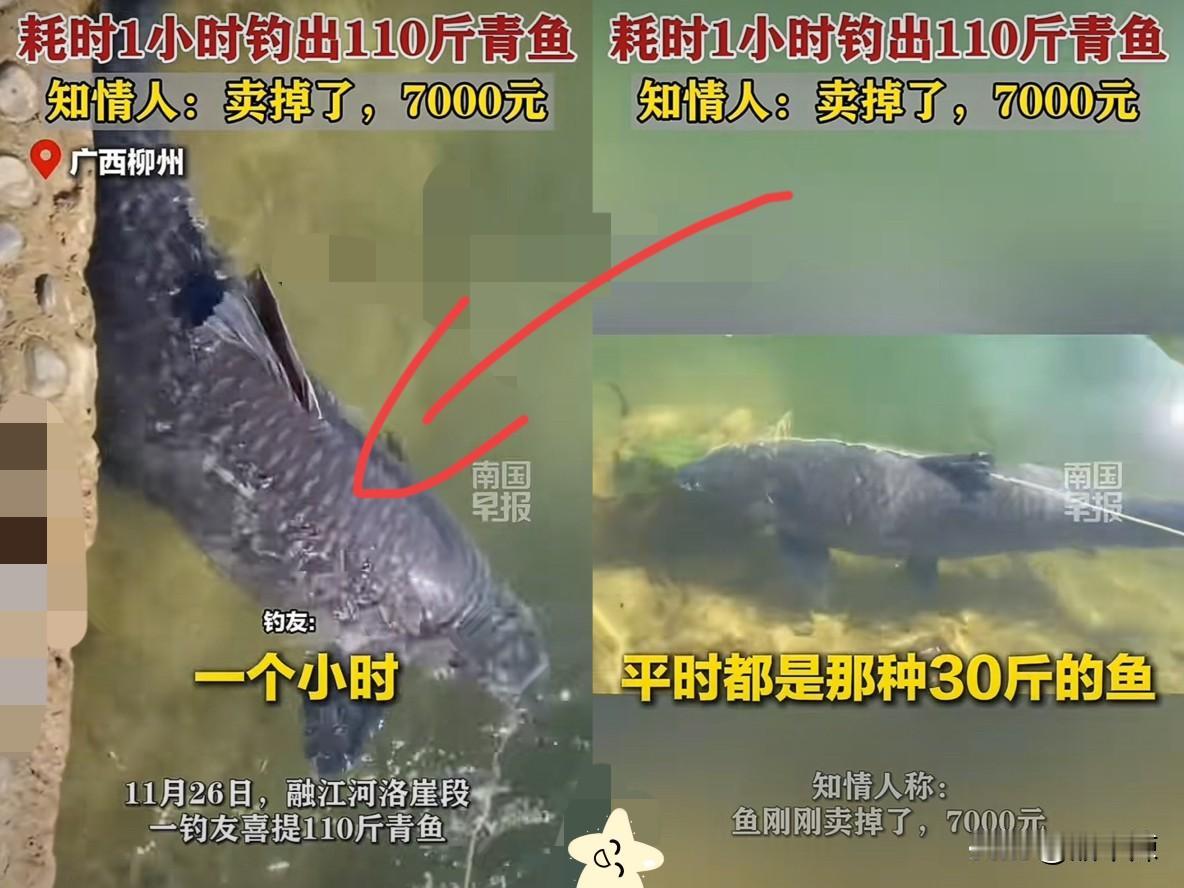 广西,男子在河边夜钓,鱼竿突然被巨力拽走,差点脱手,他喊来朋友,三人轮流拽竿一个多小时,立马喊来俩朋友,三人轮流硬拽一个多小时,手臂酸到打颤、手心磨得发烫,才把这条“巨无霸”拖上岸! 凑近一看,1.3米长的巨型青鱼,鳞片比硬币还厚实,称重足足105斤,保守估计活了二三十年,妥妥的野生“大鱼王”! 农家乐老板当场拍板7000元买下,大哥觉得这鱼难处理,能赚笔现成的也值,爽快点头! 网友直接吵翻了天!有人惋惜到心疼:二三十年的“水中老寿星”,基因多珍贵,放生多有意义,咋能当菜吃? 也有人力挺到底:凭本事钓的鱼,耗时耗力拼出来的,7000块落袋为安没毛病!其实这事哪有绝对对错?不过是有人看重实际回报,有人更在意生态价值罢了! 不过能钓上这么大的鱼,确实是一辈子难遇的体验~