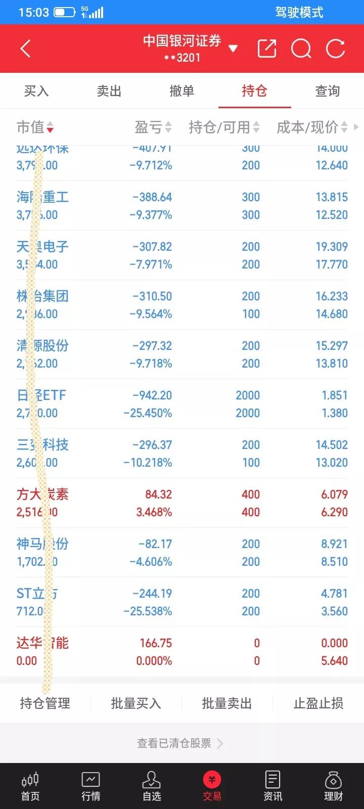 2025.11.27,今天又是亏损的一天,上午还赚几百块,但是都只是小幅反弹,没有达到我期望的卖出目标,都没有卖,下午都跌下来了,到收盘反而又亏了一百多块钱。 昨天37.01补仓了上能,很后悔的,今天早上36.23高开高走,迅速以36.85卖出,以36.90成交卖掉100股,亏了十多块钱,降低仓位,降低风险,但是卖掉就上涨,逐步上涨到最高37.93元,又少卖了100块钱,多亏了十多块钱,拉高就是诱多,还好忍住了,没有再去追高,不然又会亏多了,下午跌下来了,如果买回来,还可以赚几十块钱,算了,亏钱的不要急着补仓,避免越补亏损越多。 今天挑了3只股票,打算做t,赚一点钱,以12.65买入100股远达,上午还赚一点钱,但是下午跌下来了,以12.66卖掉,赚1块钱,保本第一吧。以14.81买入100股株冶,也是差不多,成交之后上涨了一点点,但是下午跌下来了,以14.69卖掉,亏了12块钱。以13.18买入100股三变,以13.07卖掉,亏了11块钱,今天做t全部失败,做t亏了22块钱。 收盘以1.380买入500股日经,看看明天能不能赚一点钱。昨天卖掉的众生药业又卖错了,今天又是大涨,赚钱的卖得太快,亏钱的拿得太久。 今天立方又是大跌,这次买入又是错了,亏多了,就200股,看看会不会退市。 昨天两个板的达华,两个板了还想赚更多,今天6.35大幅高开,又还想涨停,但是高开低走,又是诱多,没有继续涨停,放弃幻想了吧,跌下来又白干了,下跌中以5.84卖掉100股,卖掉之后继续下跌,下午以5.65清仓卖掉最后200股,由于太贪心,少赚了100多块钱,最终离场还剩160多块钱利润。减少股票数量,降低仓位,逐步把赚钱的卖掉。 今天总市值6.53万元,总资产10.26万元,今天总体账户亏损126元。每日盈亏记录 高位补仓