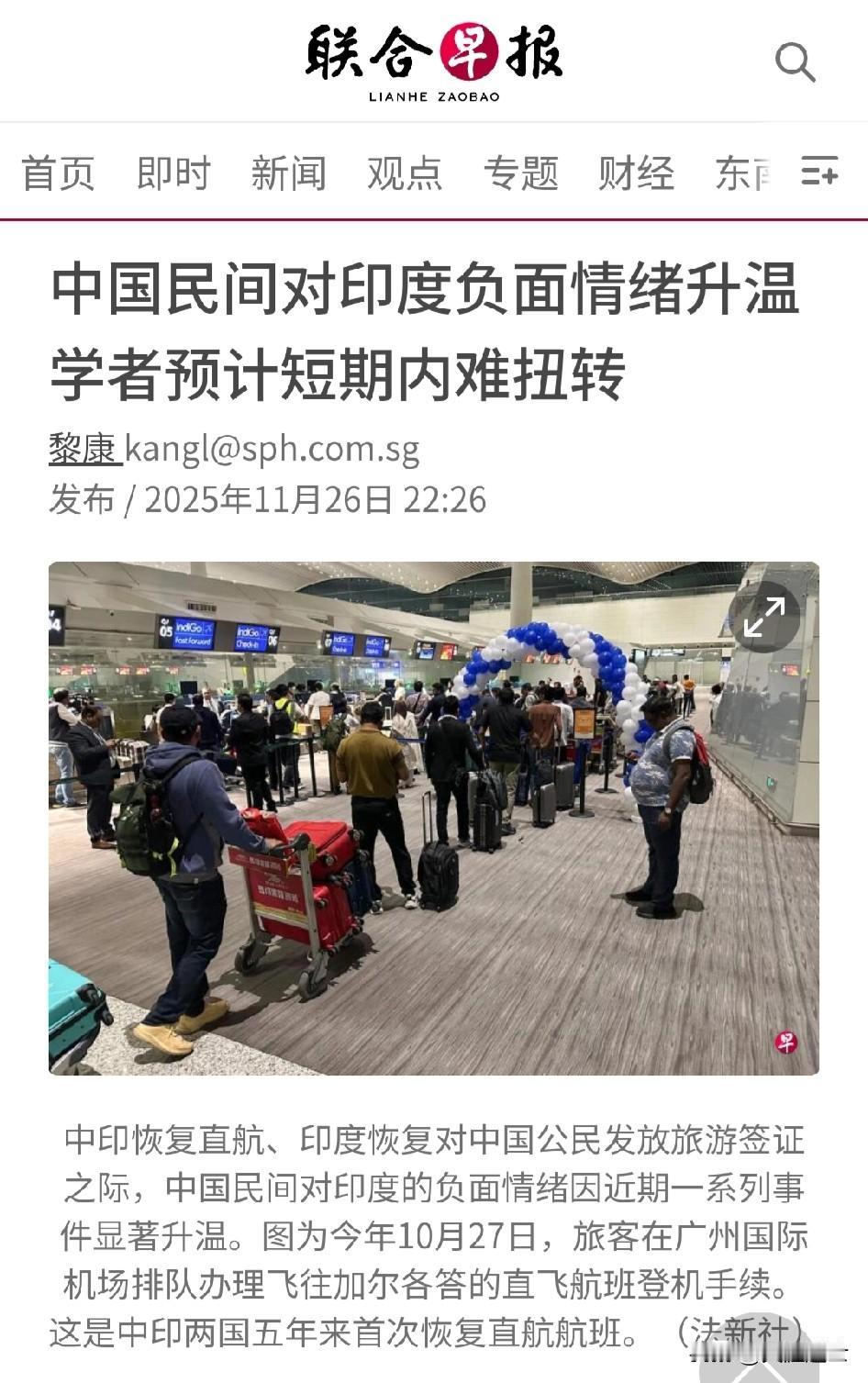 联合早报发表评论员文章称我国民间对印度负面情绪升温,有学者预计短期内难扭转。 印度人给我们的印象有多差我之前只是在网上了解,但前俩月相继发生了印度人在庐山洗澡,以及在深圳地铁上吃手抓饭,这确实很符合我们对印度的刻板认知,再加上他们那出名的恒河水,简直跟文明现代人不搭边,民间对印度也经常开玩笑,比如那几个外号。 这俩月我们对印度开通了直航,广州和上海都有直航航线,10月1日还实施了“k字签证”,但这种交流也只是有限度的交流,并没有扩大化现象。对此有学者指出两国外交关系维持在目前的状态,要指望民间关系有多大改善不太可能;从另一个意义上看,民间关系不好,对外交关系冲击的可能性也不大,因为(双边关系)已经够低了。”