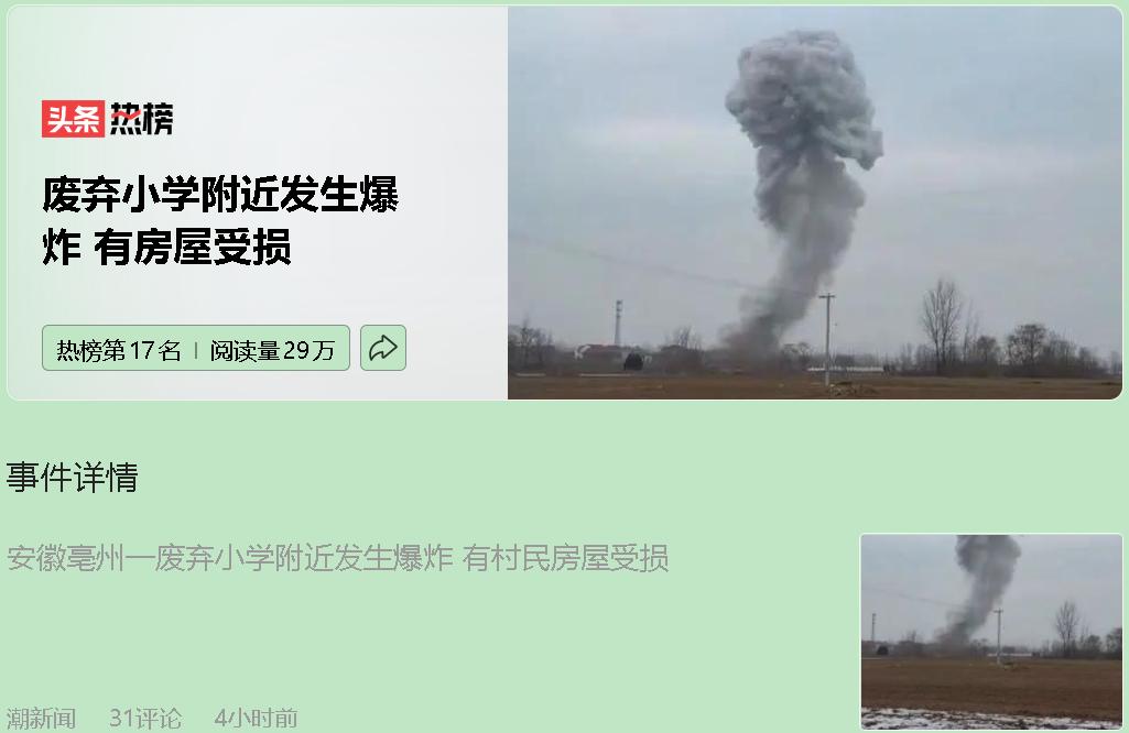 凌晨五点,王师傅的梦被撕碎了。 巨响过后,窗边多了一层碎玻璃,天边多了一朵蘑菇云。安徽亳州赵桥乡,卢庙小学旁,紧挨爆炸点的房子塌了,门窗飞了,人心慌了。村民说:"一两公里外玻璃都碎了,边上的厂房全倒了。" 可官方通报写的是:4人轻微擦伤,少量房屋受损。 两句话,两个世界。 事情不复杂。三天前,排查发现非法烟花原料。三天后,委托第三方销毁。销毁现场变爆炸现场。查封时雷霆万钧,销毁时却像走过场。烟头一扔,巨响一响,问题全暴露了。 最让人破防的是后面的事。 记者打电话到乡政府,没人接。打到派出所,说找宣传部门。宣传部门呢?皮球踢得比爆炸还响。村民站在废墟前问:"损失在统计,补偿没影子,我们该找谁?" 扎心就在这。 我们总在说"安全第一",可安全不是墙上的标语,是销毁前的反复确认,是电话那头的负责声音,是倒塌的房子有人管,是受伤的邻居有人问。不是出事了扔下一句"正在调查"就完事。 蘑菇云散了,留下的坑还在。 填坑不能只用土,更要靠人心。真正的安全感,是闭环管理,是责任兜底,是老百姓出事时,能找到一个不躲不闪的人。