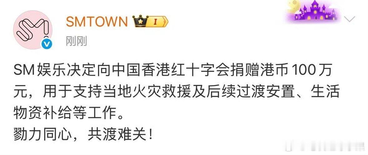 S.M娱乐决定向中国香港红十字会捐赠港币100万元多名艺人不出席香港MAMA
