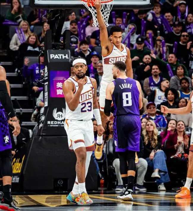 威少60%三分率轰19+8力压布克 拉文德罗赞哑火致国王2连胜终结太阳 北京时间11月27日,NBA杯西部A组焦点战在国王主场打响,菲尼克斯太阳凭借首节建立的巨大优势,最终以112-100力克萨克拉门托国王,终结对手两连胜的同时稳住小组前列。37岁老将威少打出梦回巅峰的表现,以19+8+3的高效数据力压布克,无奈国王双核拉文、德罗赞集体哑火,球队未能完成25分大逆转。本场比赛开局即呈现一边倒态势,国王防守端漏洞百出且进攻端毫无章法,首节全队助攻数为0,被太阳内外开花打出41-16的悬殊比分,单节落后多达25分 。太阳这边,布克与吉莱斯皮首节便双双得分上双,两人联手送出5次助攻,为球队奠定胜基。面对绝境,37岁的威少挺身而出点燃反扑火焰。第二节他单节6中3贡献7分2助攻,第三节更是带队打出15-5的进攻高潮,个人连中三分、抢断后单手劈扣,还送出精妙背后传球助攻队友得分,攻防两端满场飞奔的表现让分差迅速缩小至10分。全场战罢,威少出战31分钟,13投8中,其中三分球5中3命中率高达60%,高效砍下19分8篮板3助攻,用无保障底薪的身价打出了巨星水准 。相较于威少的拼尽全力,国王双核拉文与德罗赞的表现堪称灾难。拉文全场14投5中仅得13分,三分线外多次浪费绝佳机会;德罗赞11投4中仅贡献10分,标志性中距离频频打铁,两人合计25投9中仅得23分,完全未能承担得分重任。尽管国王替补阵容表现亮眼,蒙克三分6中3拿下15分,阿丘瓦7中6高效轰下14分,穆雷也有19分8篮板入账,但核心球员的集体掉链让反扑势头在末节戛然而止 。太阳方面则展现出均衡战力,马威狂揽21分17篮板的大号两双,吉莱斯皮贡献21分9助攻的全能数据,布克虽被诟病“打铁”,仍拿下19分7篮板6助攻的全面数据,狄龙也有13分进账,全队多人得分上双确保胜果 。数据对比显示,太阳在首节就建立起不可逆的优势,国王虽在篮板球(48-45)上略占上风,但糟糕的开局和核心哑火最终导致翻盘失败。