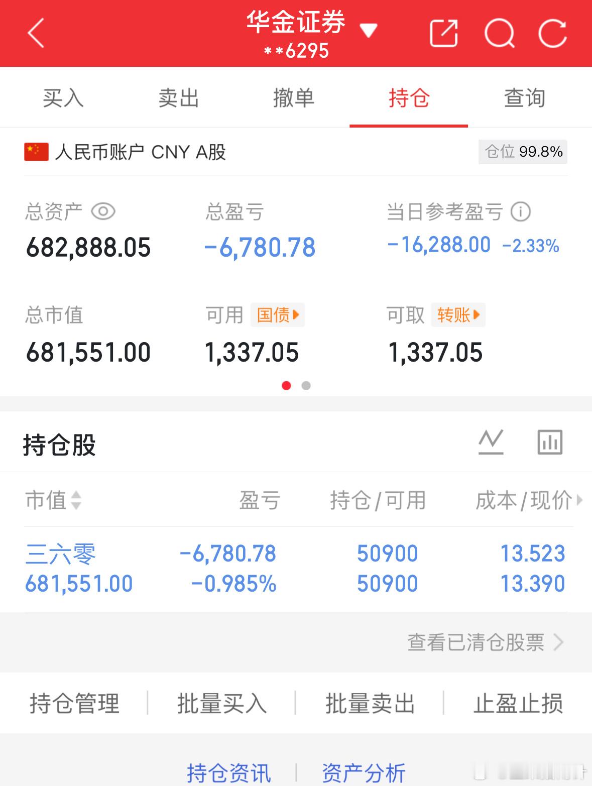 11.27记录炒股第42天(初始50万)总资产:682888当日参考盈亏:-16288持仓股:持三六零【特别声明】以上内容是个人笔记,切勿盲目跟进操作,据此买卖盈亏自负!