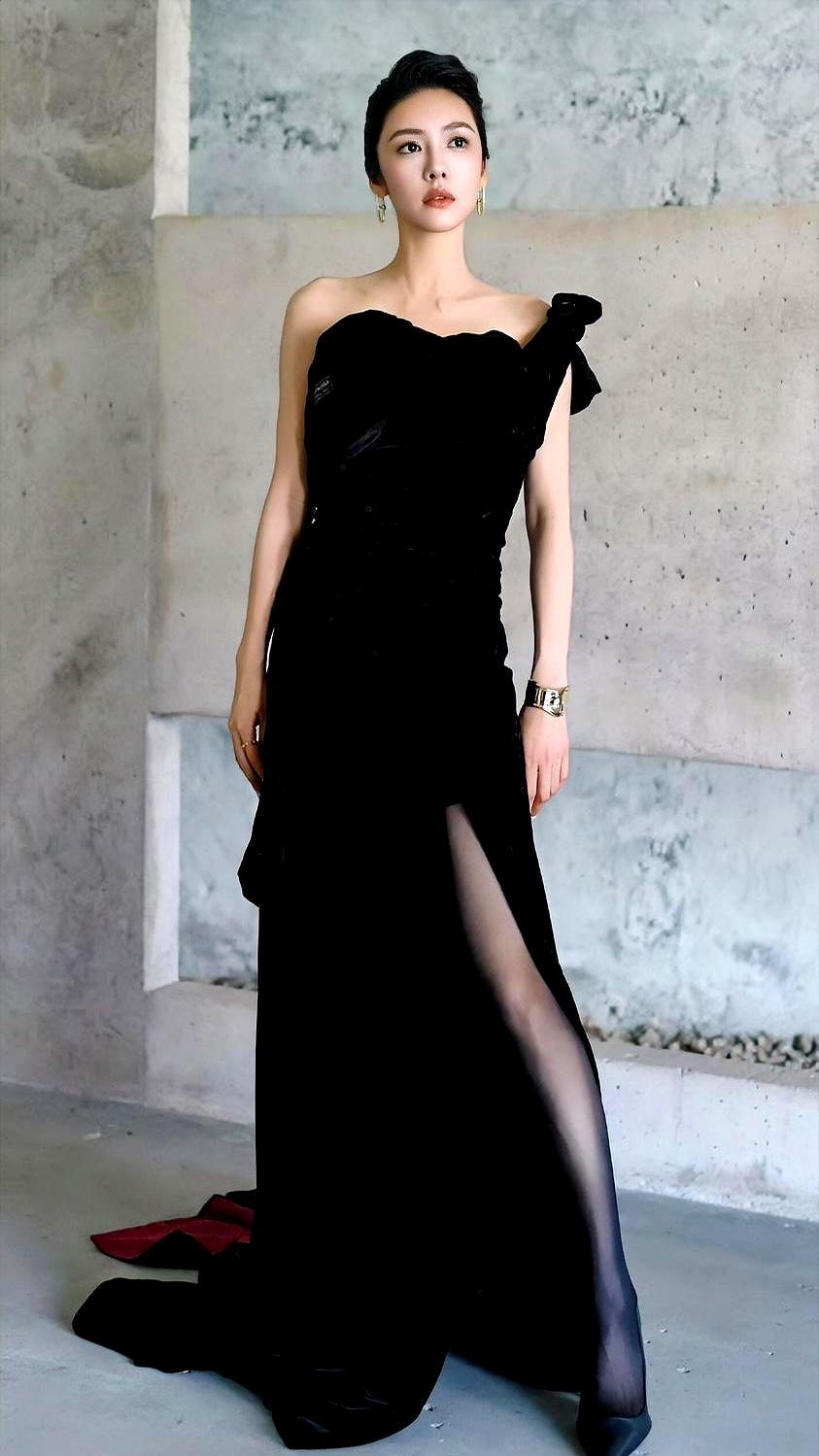 恰到好处的开衩设计配 蔡文静黑色礼服带着高端贵气,恰到好处的开衩设计配。 她就是用这一身纯粹的黑,隔绝了外界的纷扰,只留下自己清醒而笃定的气场。 这身装扮让她整个人都沉静下来,在人群中构建出一个属于她自己的、不容打扰的安静角落。 因为她太清楚自己的光芒在哪里,所以根本不需要靠别的颜色来点缀,她自己就构成了全部的风景。 她选择让这份优雅从骨子里散发出来,而不是仅仅停留在衣服表面。