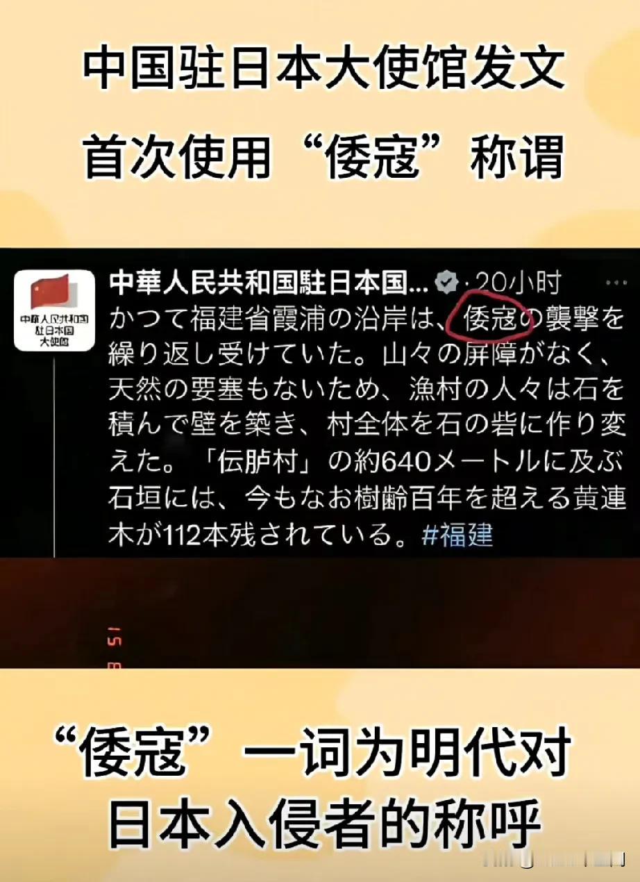 首次! 首次对日本军国主义再次启用“倭寇”这一称谓! 11月27日,我驻日本大使馆首次启用了“倭寇”这一明代对日本军国主义的称谓。 由此足以说明,对于高市早苗自11月7日表态武力犯台以来,一直死不改悔的失望与愤怒: 接下来,已经不是打不打的问题了,而几乎成了不得不打的问题了!
