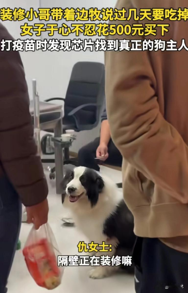 “遇到好心人了!”江苏苏州,女子出去吃饭时,听到一名维修工要把边牧杀了吃肉,就花500块钱把狗买了下来,可令她没想到的是,带狗子去医院时,竟然发现维修工并不是狗主人,面对狗主人的感谢,女子最后果断拒绝了 仇女士介绍,当天路过隔壁正在装修的店铺时,注意到一位装修工人身边蹲着一条边牧犬。她第一反应就是很奇怪,装修现场一般不会带着宠物,而且那条狗看起来品相很好,不像是普通流浪狗 小哥的回答让她瞬间没了食欲。他说这狗不是很想养了,过几天准备处理掉,用他的说法就是留着吃掉。那条边牧坐在旁边,听不懂人话,却可怜巴巴的看着他们 仇女士最见不得这样的事,当即决定把狗买下来。经过简单商量,她付了500元,把边牧带回了家 没想到,第二天事情突然反转。医院扫描芯片后,显示狗有主人,而且跟卖狗的小哥一点关系都没有。她立刻联系芯片登记信息的主人,电话那头的人听得愣住了,说前一天中午遛狗时,它追着一条流浪狗跑远了,怎么也找不回来,急得一家人都跑出去找 原主人赶来时,提出要给感谢费,毕竟狗丢失一天一夜,换成谁都睡不着。但仇女士想了想,只收回买狗和疫苗花的那千块钱,其余的一概不要。她说得很轻松,反正就是做了件顺手的事 不得不说,这个事让人感叹,一条狗在不同的人手里命运完全不一样。有人把它当伙伴,有人当废物,还有人把它当成食材。可最关键的是,总有人愿意站出来,让事情往好的方向走一步 当然,这里还有一个重点,狗子能追着流浪狗一路跑丢,说明原主人遛狗那会儿可能没拴绳,可在养狗的人看来,这就是保命绳。边牧这种性格,灵得很,又有精力,看见啥都想凑过去,一冲动就容易挣脱人的掌控。跑得快、反应快、兴奋快,回头慢,这是它的通病 牵绳不是约束,是保护。保护狗,保护别人,也保护自己,希望所有养狗人都能引以为戒