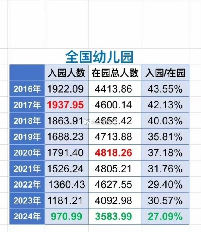 全国幼儿园,正经历一场“闭园潮” 幼儿园关停的速度,正在追上孩子出生的速度。 最新数据揭示了一幅严峻图景:2024年,全国幼儿园数量锐减2.11万所,降至25.33万所,关停幅度从5.12%扩大至7.69%。更触目惊心的是在园幼儿数,一年之内减少509万人,总入园人数从1922万的高点“腰斩”至970万,仅用了八年。 生育“断崖”未有尽头,下滑速度超乎想象 人口坍塌的斜率,比预想的更为陡峭。一个国家总和生育率从1.3跌至1.0,韩国走了17年;而中国,只用了3年。这预示着,出生人口的“断崖式下跌”不过刚刚拉开序幕。 未来两年,关于人口的各类信息将空前爆发。但无论何种形式,都在指向一个无法回避的核心:人口问题,已是我们面临的最根本、最严峻的挑战。 这场静悄悄的“闭园潮”,只是冰山最先浮出水面的一角。