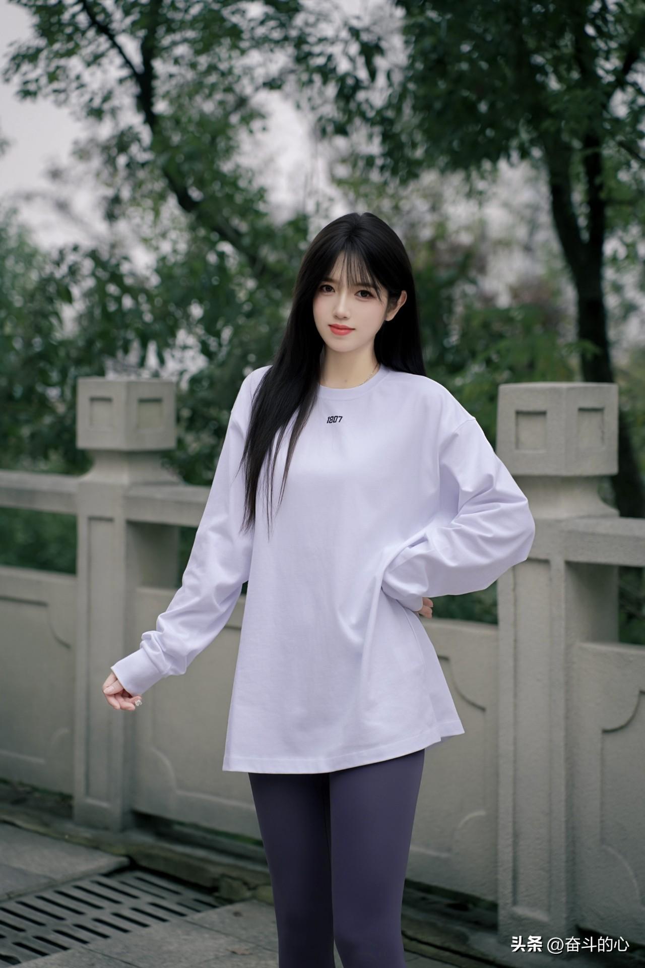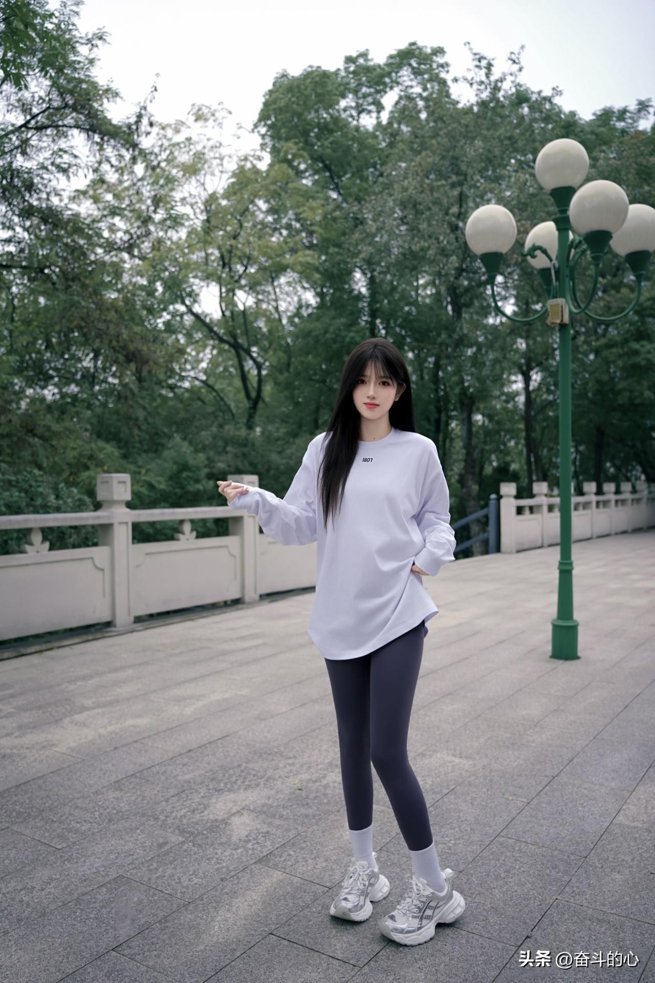 谁懂啊!oversize白卫衣+深灰瑜伽裤+银老爹鞋,松弛感直接拉满✨ 白卫衣宽松到慵懒又藏肉,瑜伽裤把腿型衬得笔直,老爹鞋一踩,休闲又活力,在公园拍都像随性出街的博主🎬 散步或逛公园穿太合适了,舒适又时髦,被路人夸“好会搭,看着就舒服”~喜欢松弛感的姐妹,这套闭眼冲!