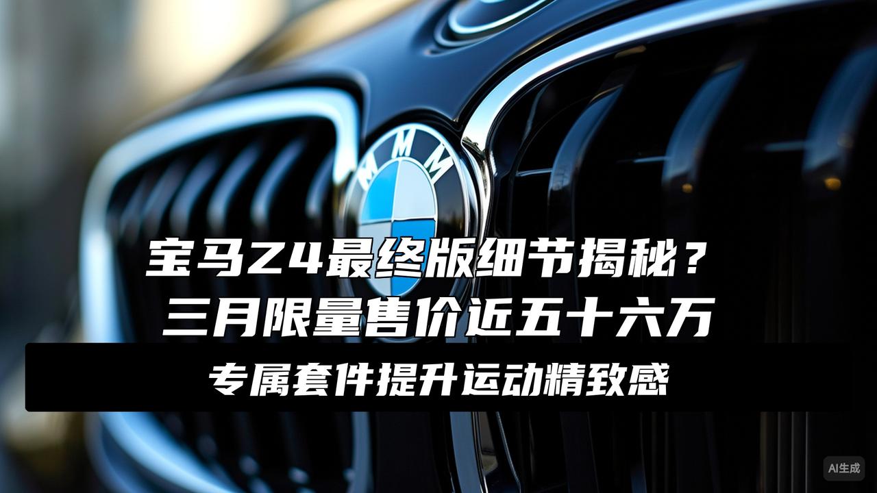 预计2026年2月份限量发售 宝马Z4 Final Edition官图发布 突发!宝马Z4要谢幕了?最终版官图刚爆出来!2026年2月到4月限量生产,想买的可得抓紧了。 比普通版贵了快一万美元,这钱花在哪儿了?起售价7.8675万美元,约合55.74万人民币,而普通版Z4 M40i才6.9575万美元。 光看价格可能觉得不值,但配置确实给得足。 外观直接拉满辨识度,磨砂黑金属车漆配暗夜套装,后视镜外壳双肾格栅全是亮黑色,连排气口都熏黑了。 月光黑软顶篷一收,红色刹车卡钳露出来,运动感简直藏不住。 坐进车里更有料,座椅用黑色Vernasca皮革拼阿尔坎塔拉翻毛皮,红色缝线从仪表台缝到车门饰板,连脚垫都带着红线。 迎宾踏板刻着专属标识,一开门就知道这不是普通Z4。 哈曼卡顿扬声器、抬头显示、氛围灯全配齐,精致感没话说。 动力还是熟悉的3.0T直列六缸发动机,382马力500牛·米,8AT和6MT变速箱可选。 选6MT的话还带专属调校套件,后减振器转向系统牵引力控制系统都重新调过,M运动差速器也有专属程序,开起来肯定比普通版更带感。 同平台的丰田Supra明年3月就停产了,宝马Z4现款也没说啥时候停。 这最终版会不会是燃油Z4的绝唱?最后一代燃油小跑车,你会为这情怀买单吗?评论区说说你的看法,关注我,后续实车到店第一时间带你看!