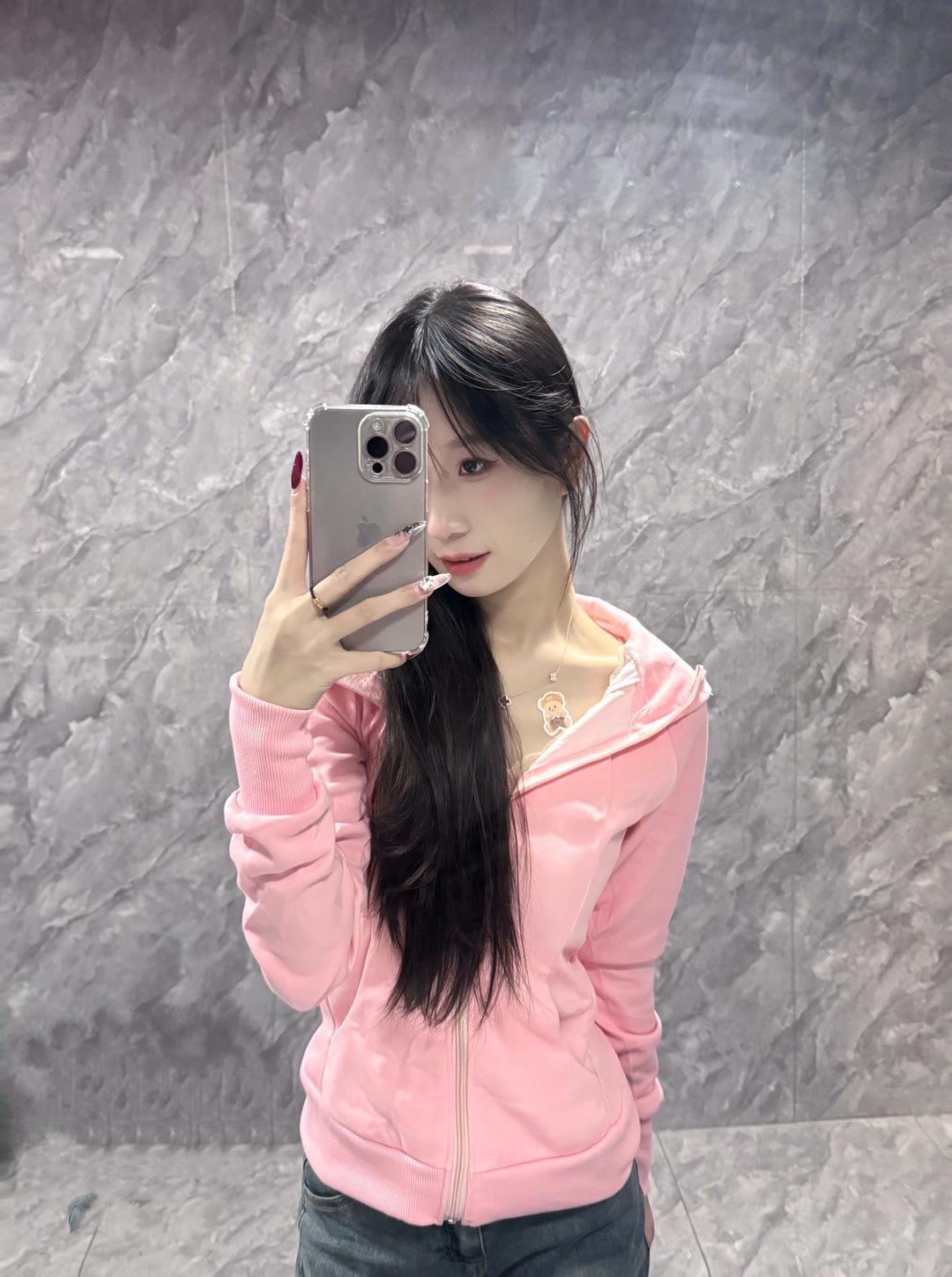 元气少女自拍,温柔甜美,粉色指甲与发带相得益彰。甜美自拍