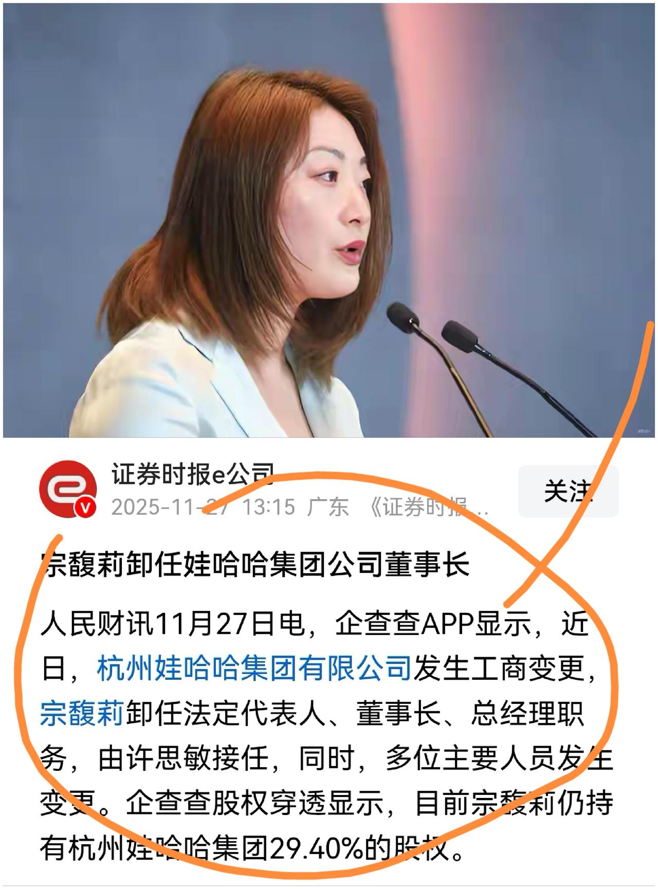宗馥莉不当娃哈哈董事长了?别急,这招可能更高级! 宗馥莉卸任娃哈哈董事长,这新闻一出来,很多人都懵了:啥情况?刚接班没多久怎么就退了?是不是内部出问题了? 别急,咱们看事情不能光看表面。这一招“以退为进”,背后藏着娃哈哈一步大棋。 ①不是“撒手不管”,而是“换个方式管” 最关键的一点:宗馥莉虽然不当董事长了,但她手里还握着娃哈哈将近30%的股份!这是什么概念?这意味着她依然是公司最大的老板之一,公司赚了钱,有她将近三成的份。 所以,这根本不是“退出江湖”,而是从“前线总指挥”变成了“幕后大股东”。以前什么事都得亲自拍板,累死累活;现在呢,把握大方向,具体打仗的事,交给更专业的职业经理人团队。 这就好比一个大家族,老爷子把家里最大的生意交给专业管家团队去打理,自家人坐在董事会里听着汇报、拿着分红,既省心又不会失控。这是公司成熟的标志,说明娃哈哈不再只依赖某个“强人”,而是靠一套健康的制度来运转。 ②打破“子承父业”的老剧本 咱们中国人传统观念里,老爸打下的江山,必须得传给儿女,不然就是不完整。但你看宗馥莉这波操作,简直是一股清流。 她用实际行动告诉大家:接班,不一定非要自己坐在那个董事长的位子上。死磕自己不懂或者不擅长的事情,反而可能把公司带坑里去。 真正的传承,是保住公司的魂和根,同时让更专业的人来做专业的事。这给所有家族企业打了个样:别被“必须儿女当CEO”的观念绑死,找到对的人,用对的方法,让公司活下去、活得好,才是对父辈事业最好的继承。这格局,一下就打开了。 ③娃哈哈可能正在憋个大招 想想现在的饮料市场,可不是当年一瓶AD钙奶打天下的时候了。各种新品牌、网红产品层出不穷,竞争惨烈。 在这个节骨眼上,换上一个全新的职业经理人团队,你想干嘛?很可能是要“换引擎”了!娃哈哈这台老牌战车,可能正准备在渠道、营销、产品创新上,来一次彻底的“系统升级”。 所以,这次人事大地震,更像是一次“战略重启”。宗馥莉退后一步,不是退缩,而是为了给公司腾出空间,进行一次更灵活、更凶猛的转身。 别把宗馥莉的卸任看成一场“落幕”,这更像是一次“换档”。她从驾驶座换到了副驾(甚至后座老板位),把方向盘交给了更熟悉新路况的职业司机。 她用自己的选择,告诉所有人:别争那个虚名,抓住股权和核心价值,才是真正的智慧。让家族的归家族,让专业的归专业。 这对娃哈哈是福是祸?让我们拭目以待。但至少,这一步走得足够大胆,也足够聪明。