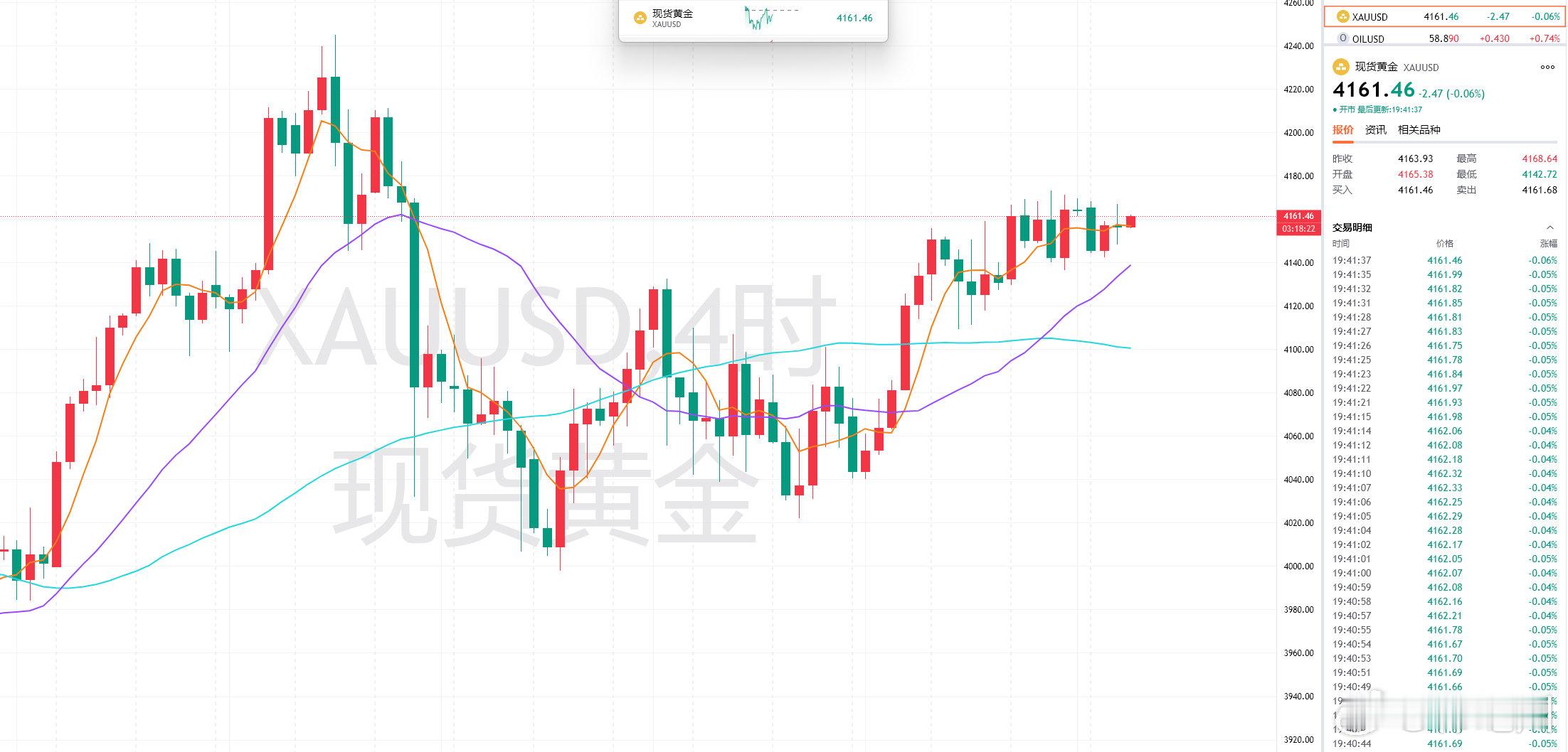 晚间黄金福利策略分享:【现价单】交易品种:黄金操作方向:做多操作建议:4161附近防守:4154 目标:4175具体操作盘中实时通知!目前黄金低点上移,同时回弹突破4160线上方,整体还有延伸空间,先看能否向上突破!!跟单需知:首要则是跟单切勿过重仓操作,微博内容纯属分享,不构成任何买卖指令;其二,行情瞬息万变,本人给单会优先安排盘内客户,其次再是微博,策略或多或少会有所延时,具体以盘中实时策略为准,场外跟单需自行作出调整;其三,市场无常,操作需谨慎。严格根据自身资金及仓位设置止损是保住本金以及利润的最后一道防线,切记!市场有风险,需保持理性;