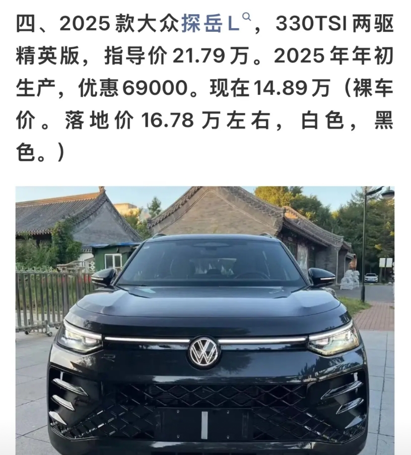 现在的燃油车也太便宜了,新款探岳L裸车才14万多,还是2.0T版本的。我记得朋友几年前买的18万落地的1.4T老款探岳,不知道他看到这个价格会是如何感受……