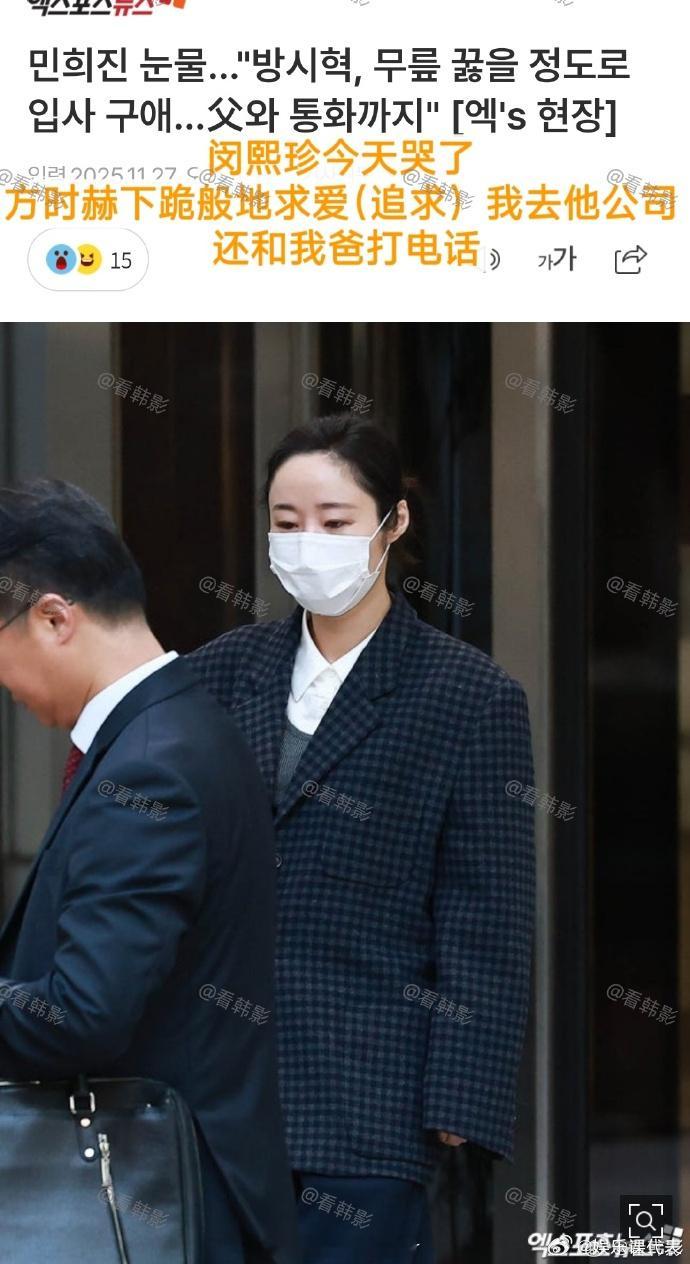 闵熙珍说方时赫是自己粉丝闵熙珍说方时赫当初为挖她可以下跪 闵熙珍:当时方时赫为了让我去他公司,非常地求爱(追求)我。一起吃饭之后,我父母给我打电话说,方时赫对他们说:“我会让你女儿想做的都能做到,一定要来我们公司,我是闵熙珍很久的粉丝了,想要和她一起工作,简直是下跪的状况。”