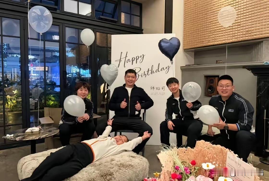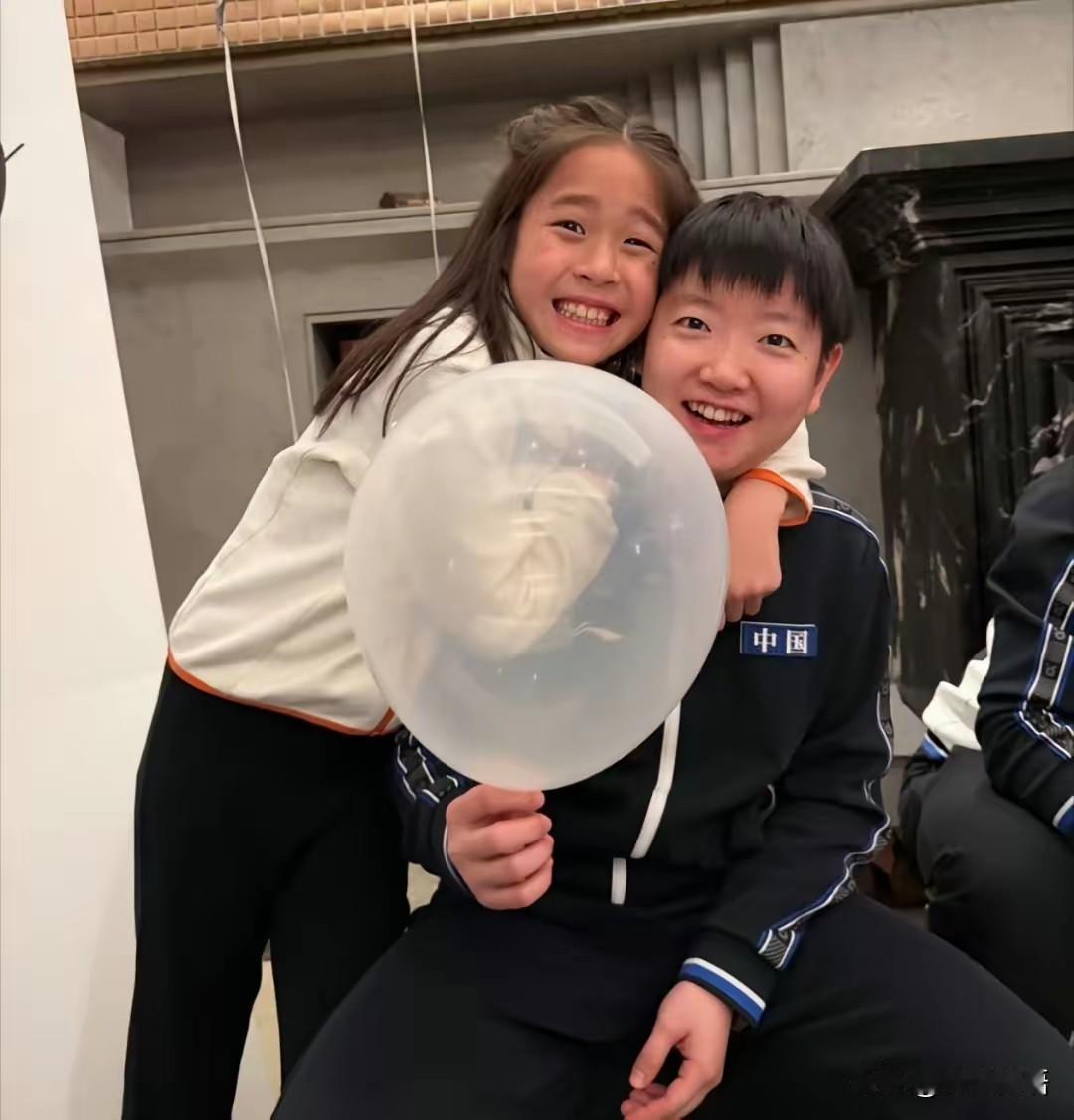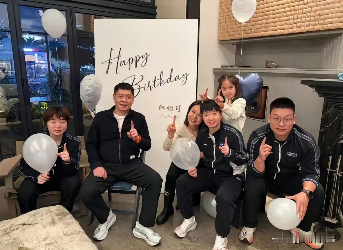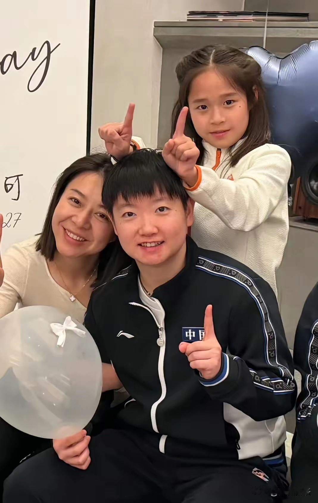 师娘和小豌豆都贴着莎莎。 今天是邱贻可的生日,因为参加成都混团的比赛,他也回成都了,回到成都就可以看到小豌豆了,今年邱导的生日过的很幸福啊。邱导端着蛋糕的时候,听到莎莎很卖力的在唱生日歌,太可爱了,小豌豆也长高了很多,这次在成都比赛,小豌豆又可以去当球童了。 看到师娘也和莎莎贴贴拍照了,大家说不知道的还以为莎莎又过生日呢。今天的训练结束后,莎莎和蒯曼、翔哥一起去给邱导过生日,看邱导笑的多开心,看到莎莎他们还穿了一样的衣服,满满的仪式感啊。小豌豆还搂着莎莎姐姐的脖子拍照了,莎莎手里拿着气球,很幸福啊,小豌豆和莎莎还真的长得有点像,俩人的痣还都长在相同的地方,小豌豆喜欢莎莎姐姐,师娘也喜欢莎莎。 莎莎今天过的很充实啊,上午和梁靖崑他们一起去了武侯祠公园,下午去训练备战比赛,晚上和师娘一家一起为邱导庆生,真好。邱贻可是真的很幸福啊,接下来的日子带着莎莎好好打比赛,希望你们越来越好,加油!