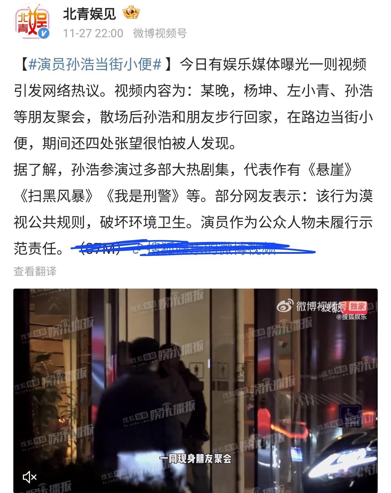 太丢人了! 演员孙浩和歌手杨坤等人聚会,散场的时候和朋友步行回家。 可能是喝得有点多,在路上实在憋不住了,于是在绿化带里小便了。 结果正好被狗仔拍个清楚…… 说实话,本来中年人,憋不住尿已经很尴尬了。 这还被人拍到发到网上,我估计孙浩酒醒后,肠子都要毁青了吧——