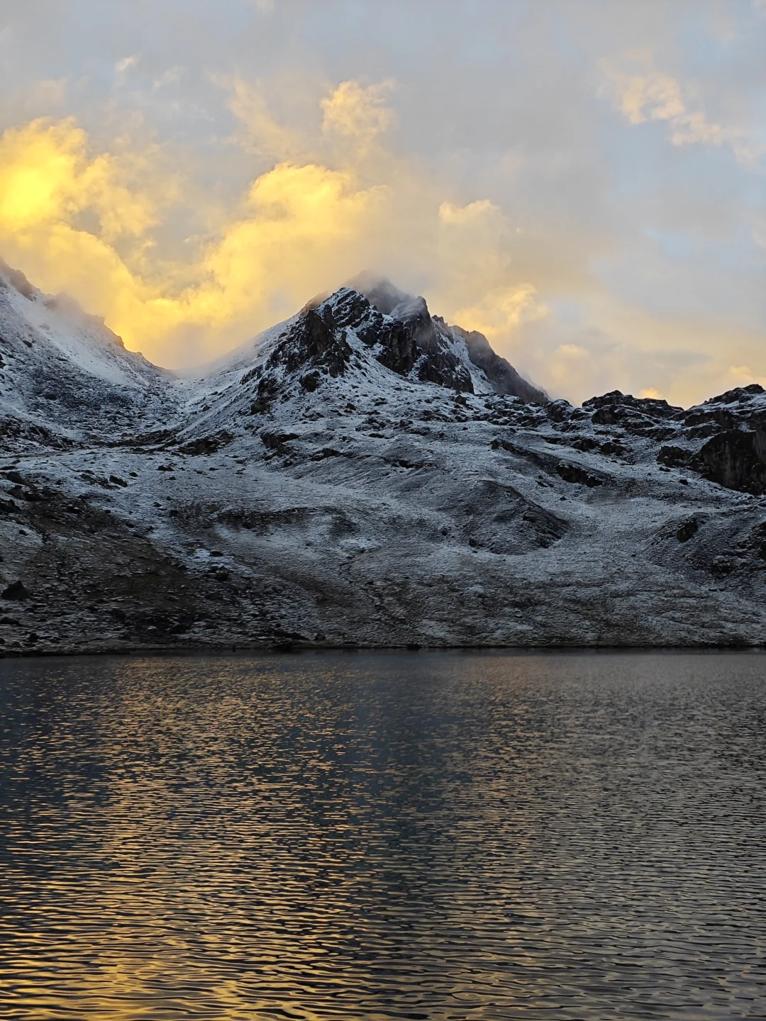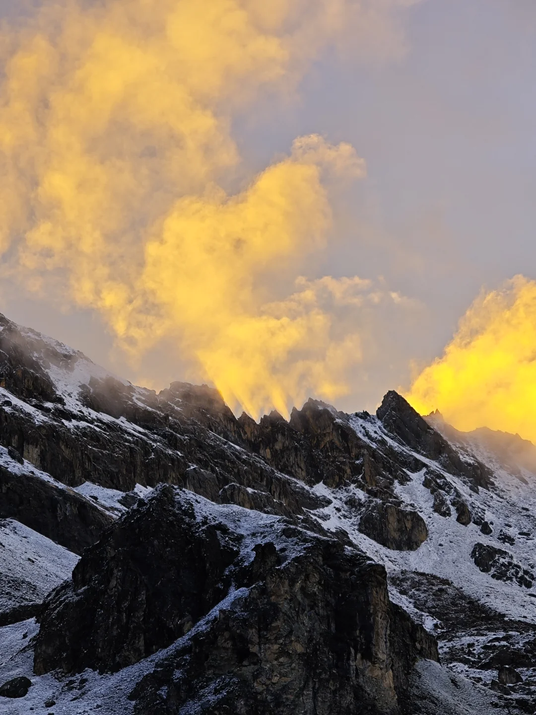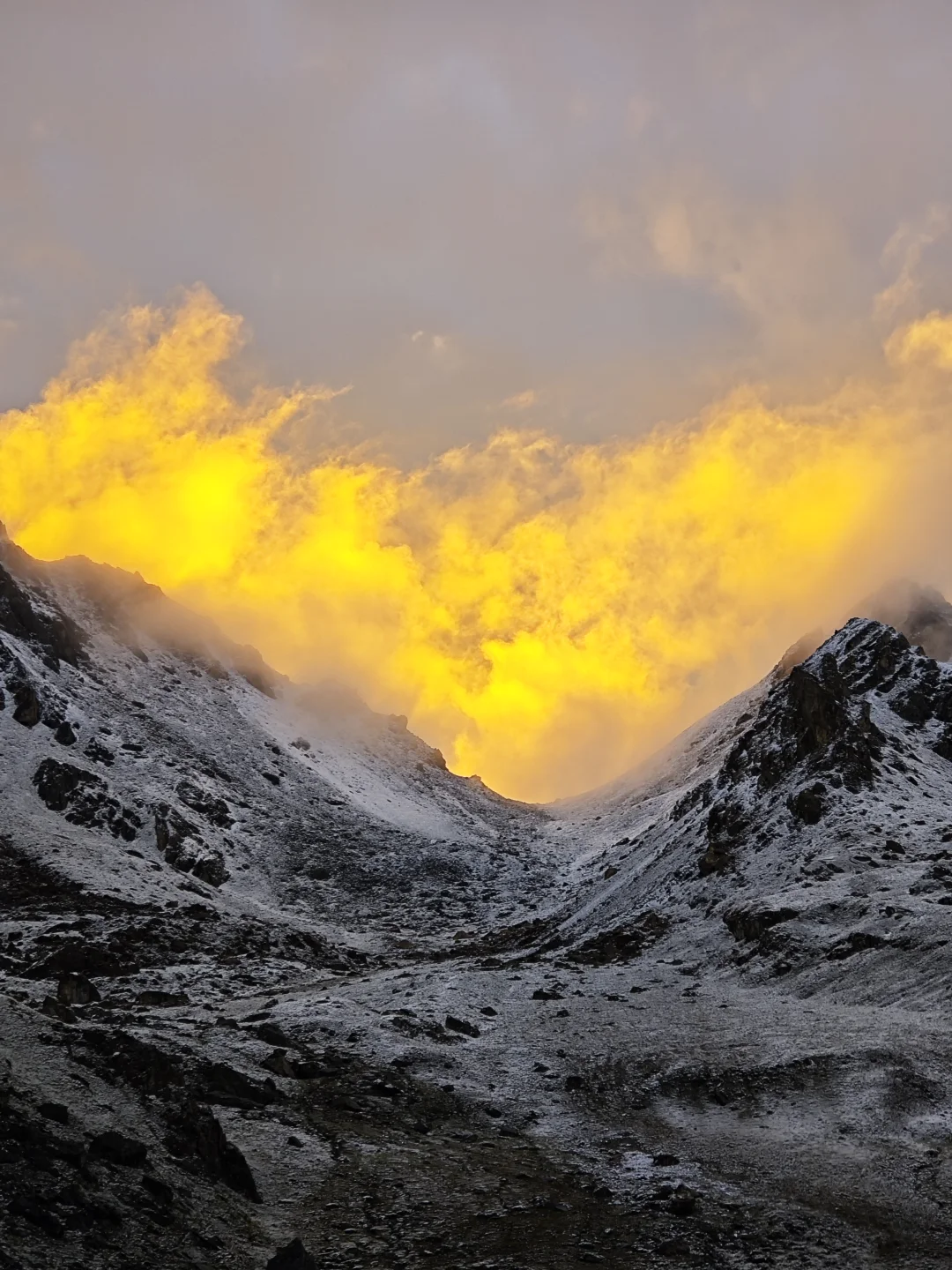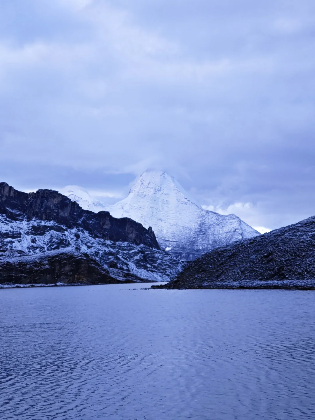 一早醒来,打开帐篷,山上白茫茫一片,晚上竟然下雪了,这是在川西徒步一个月第一次下雪,也算是邂逅了2025年的第一场雪吧。