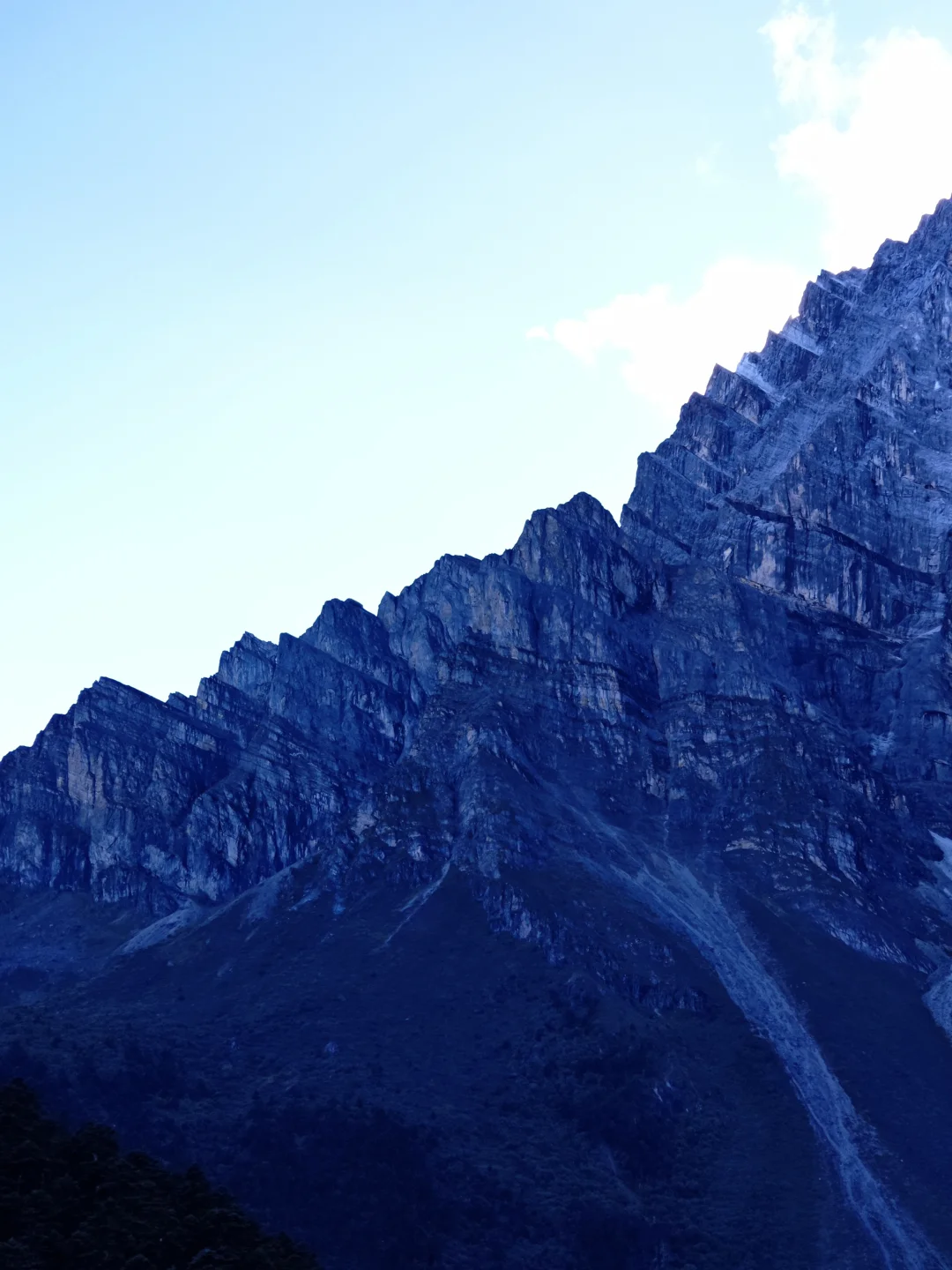 今天的行程爬升不多,大部分都是下降路段,爬升主要在波拥措营地到且萨嘎丁垭口这段路。且萨嘎丁垭口海拔4907米,是亚丁大转山路线的海拔至高点,虽然爬升不多,但海拔高,走起来非常吃力,没走几步就喘的厉害,走得慢,耗费的时间也多。爬升途中超越了先拔营的朋友,还超越了昨天在垭口下方扎营的朋友。