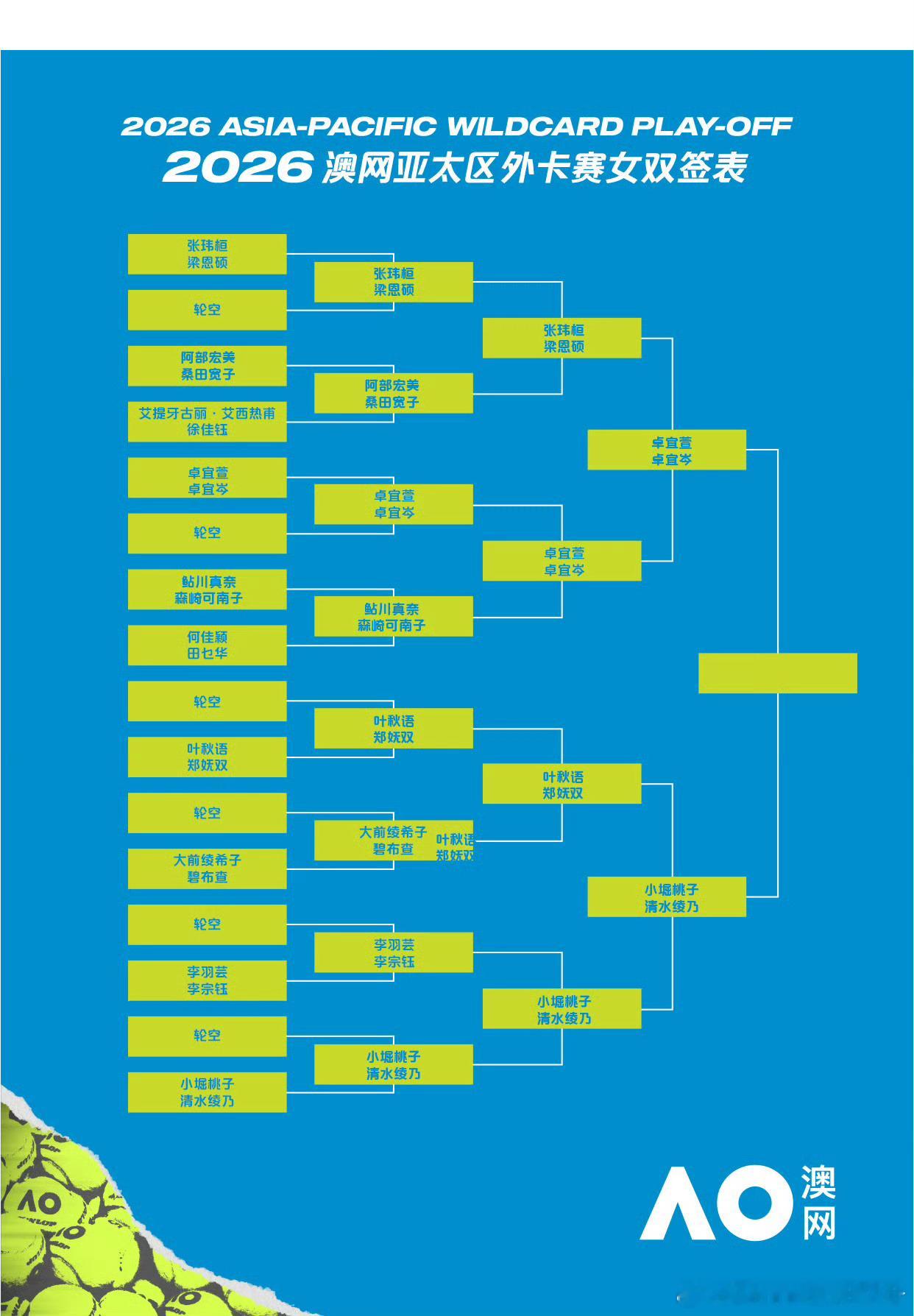 澳网2026亚太区外卡赛女双签表更新卓家姐妹闯进决赛网球talking大会