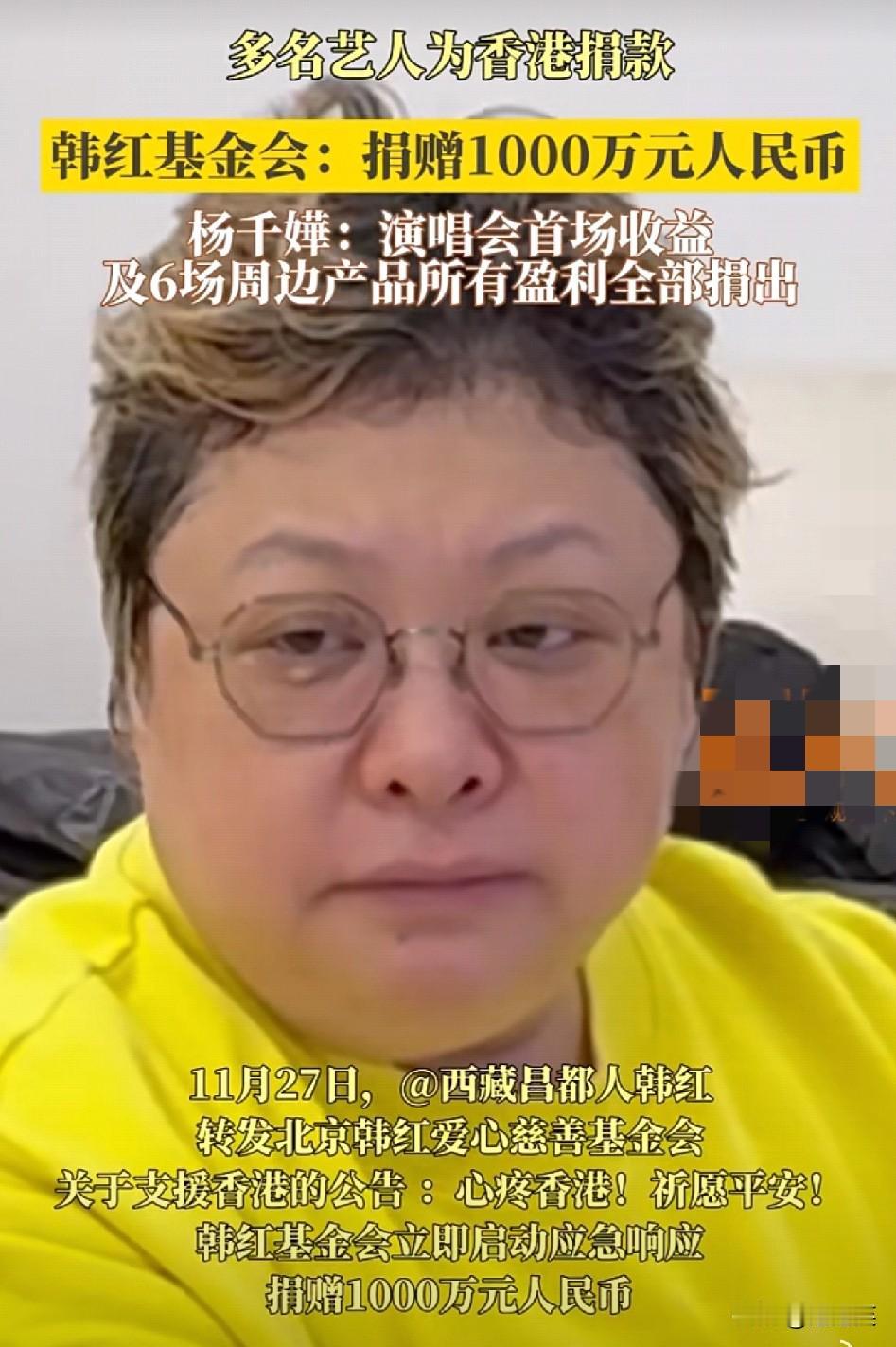 破防了 谁能想到 一场大火让两岸三地的善意拧成了绳 韩红基金会捐1000万 杨千嬅把首场演唱会收益+6场周边盈利全捐 周深捐100万还喊着“盼大家平安” 当年内地遇困,香港艺人义演筹款 如今香港有难,内地和香港艺人双向奔赴 这哪里是捐款,是“你曾帮我,我必护你”的真情啊 善意从不是单方面的付出,是藏在岁月里的相互牵挂 这种跨越距离的守望相助,才是最动人的人间烟火吧?