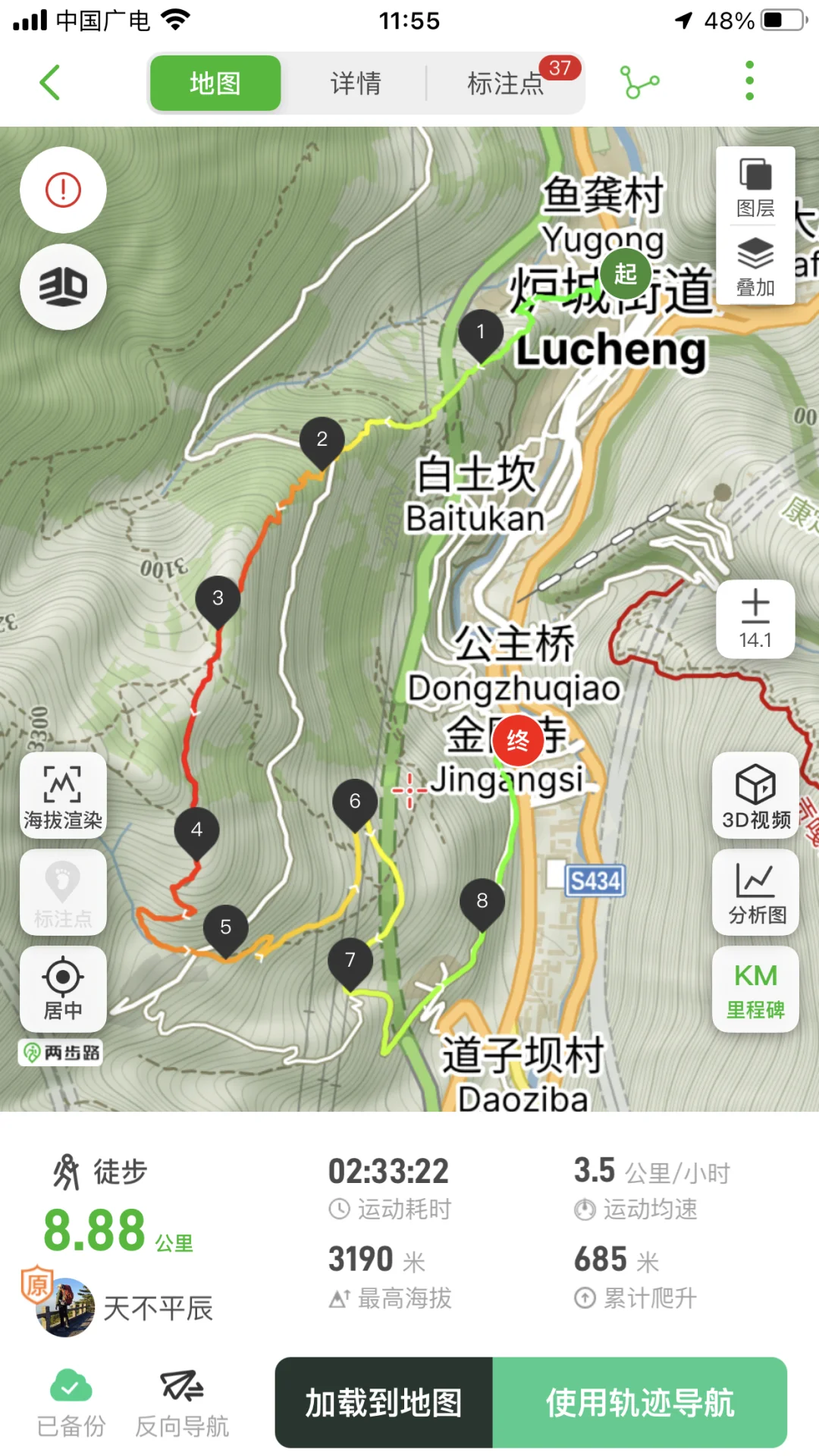 我从康定门出发,走过一段复杂的城市道路,便进入了山路,城市道路错综复杂,山路入口比较隐秘,如果方向感差或不会看轨迹,不太容易找到入口。进入山路后便是沿山脊爬升,山上冷杉林茂密,遮天蔽日,阴凉静谧。山上有坟场,加上冷杉林静谧阴凉,有种阴森的感觉,想去的朋友建议多人结伴同行。