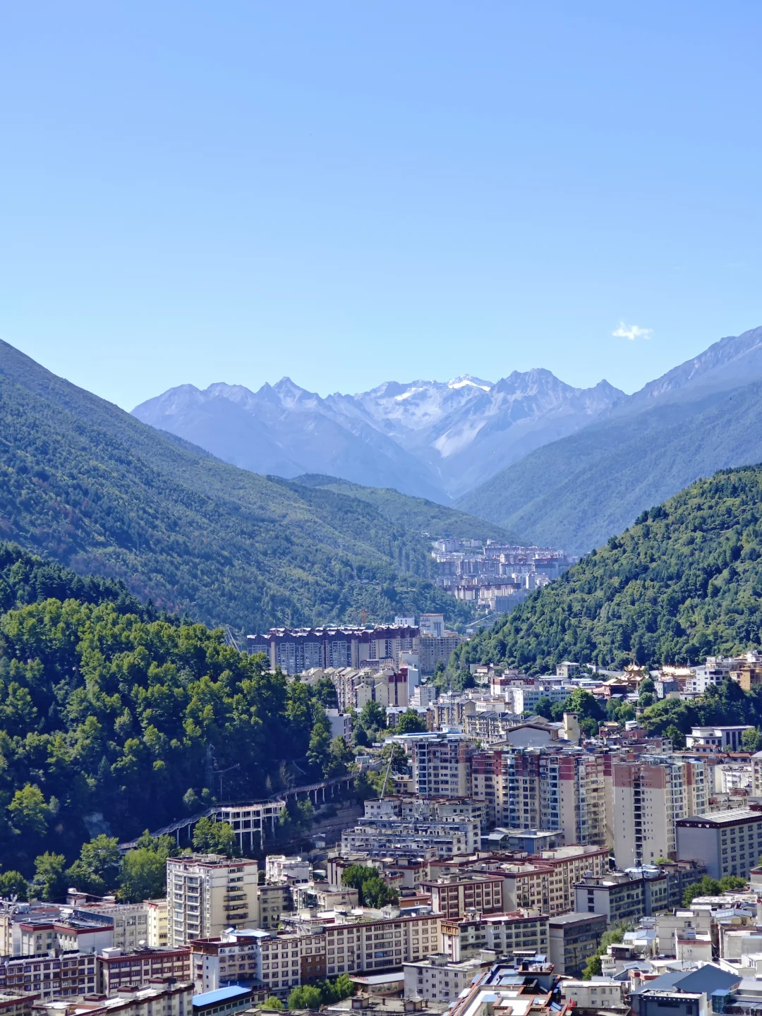 出冷杉林后,视野开始变得开阔起来,可俯瞰康定新城区,也可远眺对面的蛇海子山和笔架山,同时也意味着即将到达大草坝。