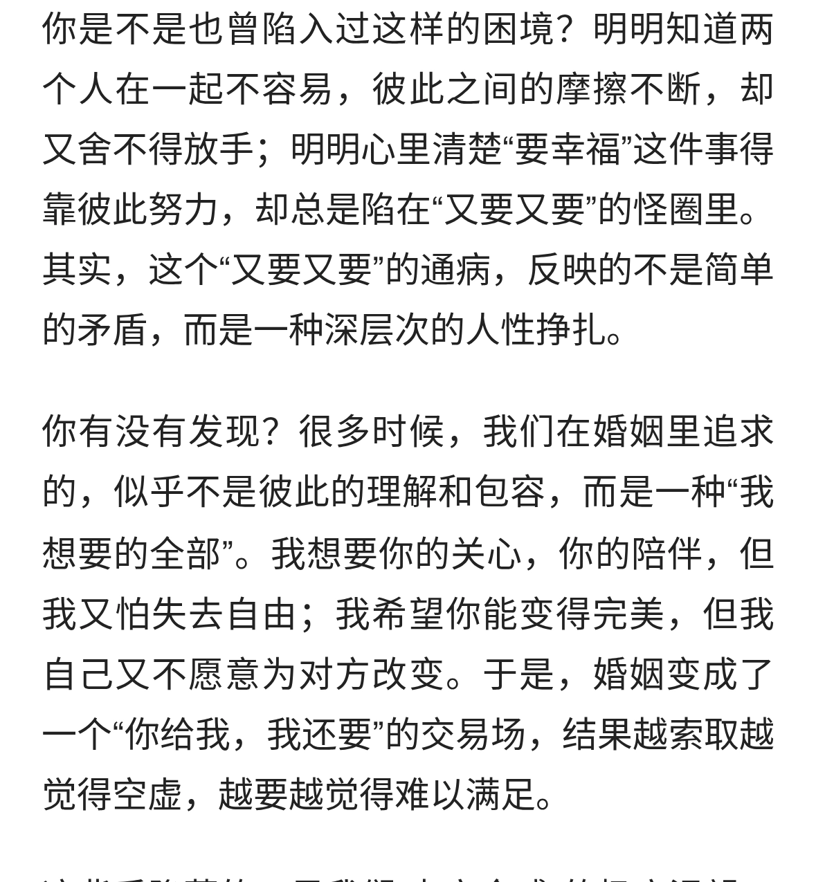 我发现大部分婚姻过又过不好,离又离不掉的夫妻都有一个通病;