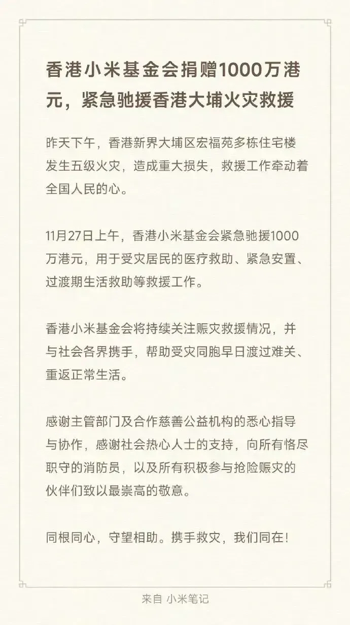 水火无情人有情!香港特大火灾,比亚迪捐赠1000万港币,小米捐赠1000万港币!这就是民族企业i的家国情怀!做企业不仅仅是为了赚钱!在自然灾害面前,他们承担了该承担的社会责任!