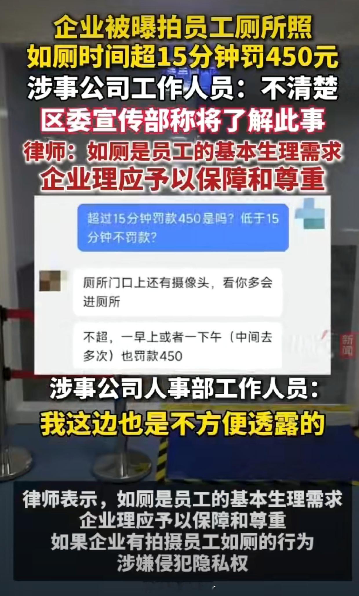 公司被曝拍员工如厕照并记录时间你听听这是人说出来的话吗?懂不懂尊重员工啊