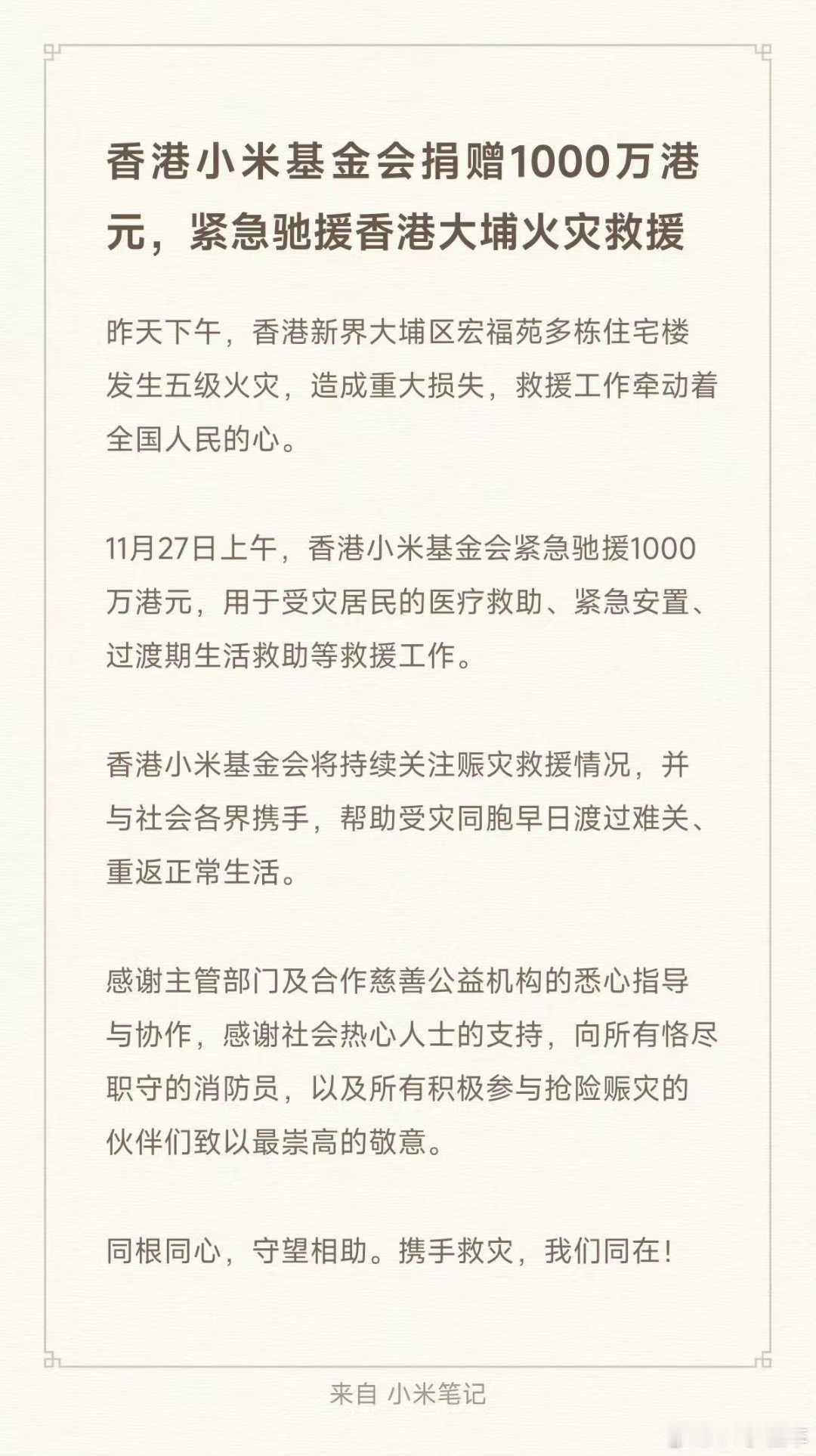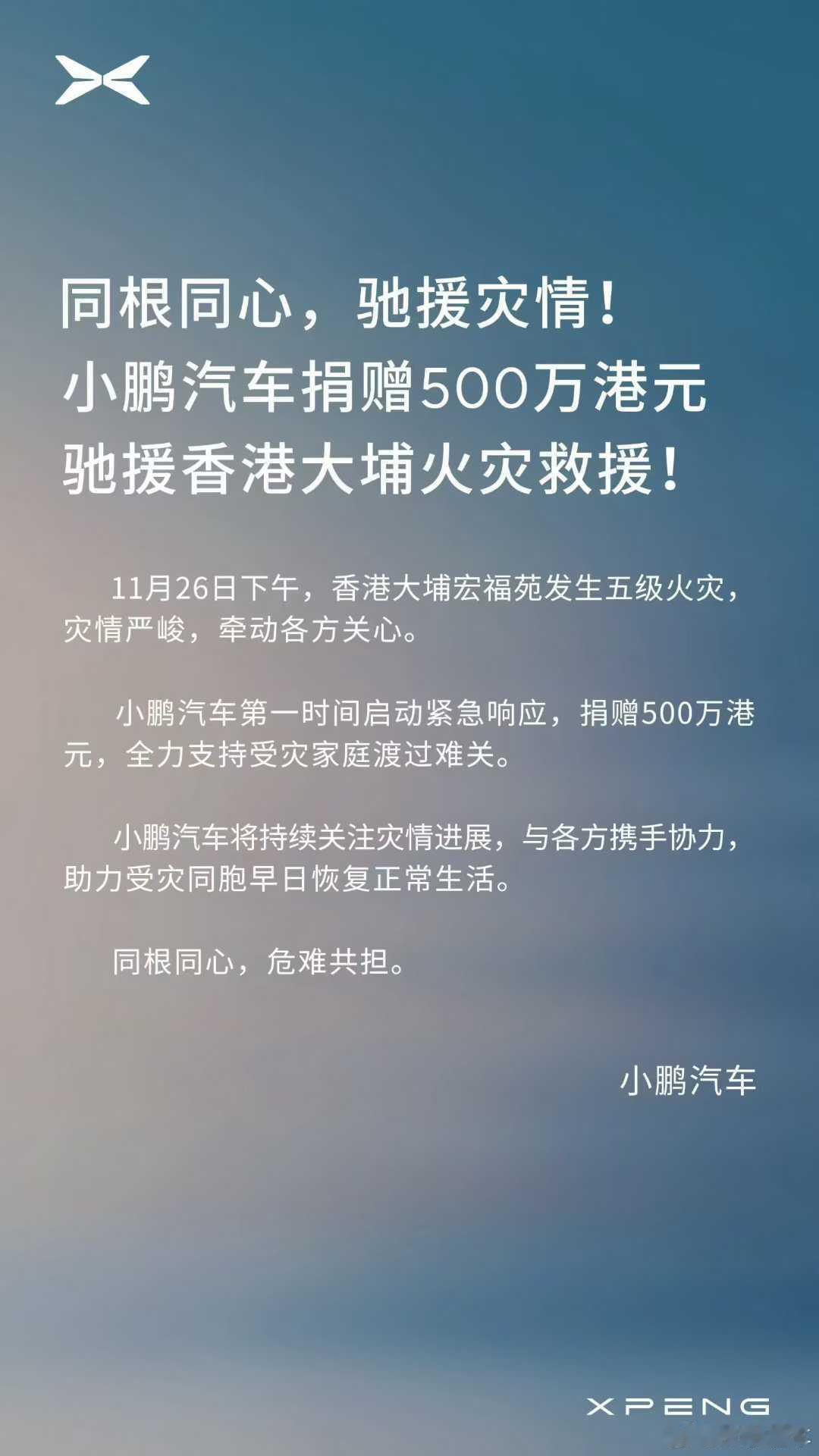 同心守望,共克时艰!比亚迪、小米、小鹏捐款驰援香港大埔火灾救援