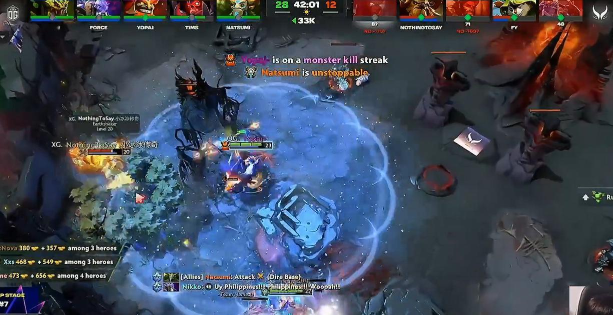 MIDDIFF局,XG不敌OG没能在今天取得三连胜,点了夜宵看这把比赛的观众绝对享大福了,莫莫哥的牛头人辣中爆辣!没记错的话全场没有跳过一次命中两人及以上的回音击,基本都是单大一个酱油