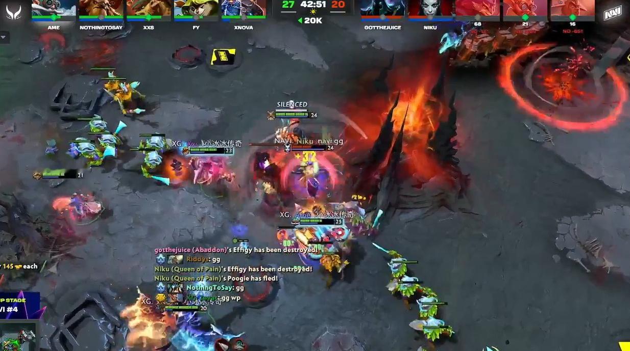 XG战胜Navi获今日小组赛开门红,这把XG的状态相比昨天有明显提升,不仅对线处理的相当成功,中期节奏也是行云流水,唯一的瑕疵就是下路破高后队员的选择没有达成统一,Ame飞机想着拆完高地继续打钱了而莫言牛头则直接跳大跟对面酱油来了波一换一,这波换完让Navi正面有了些许可趁之机,好在XG最终还是凭借多波肉山团的获胜有惊无险的赢下了这局
